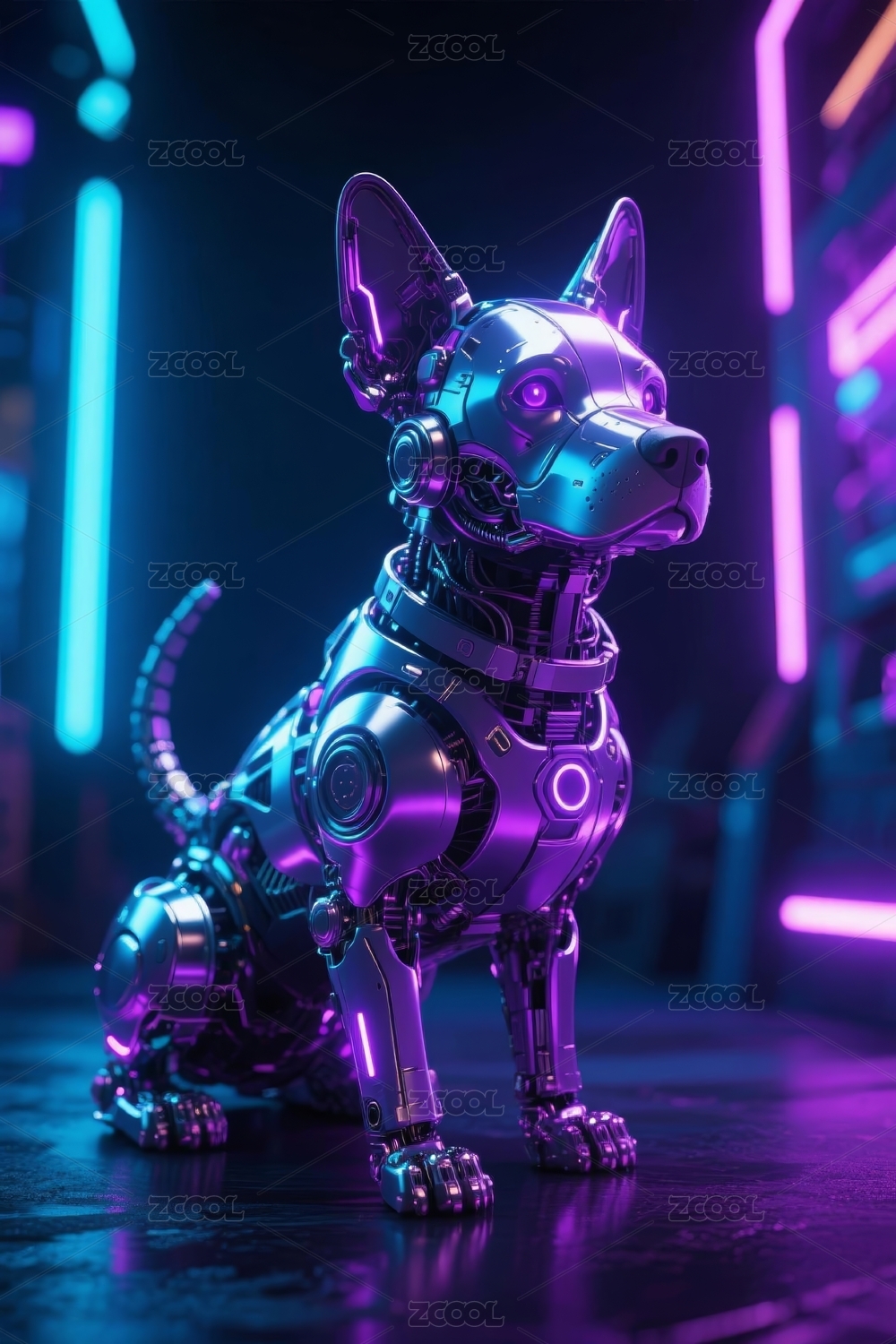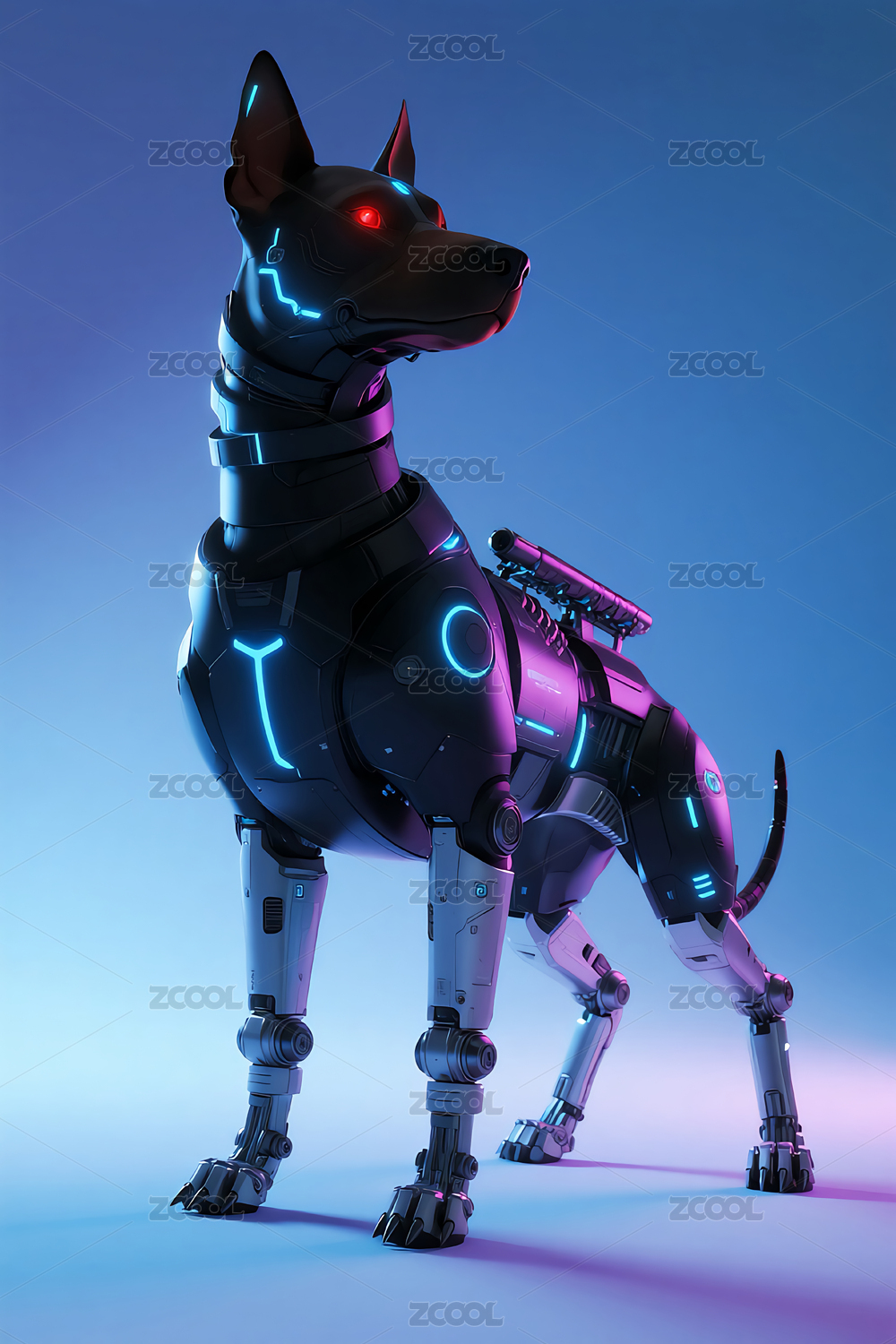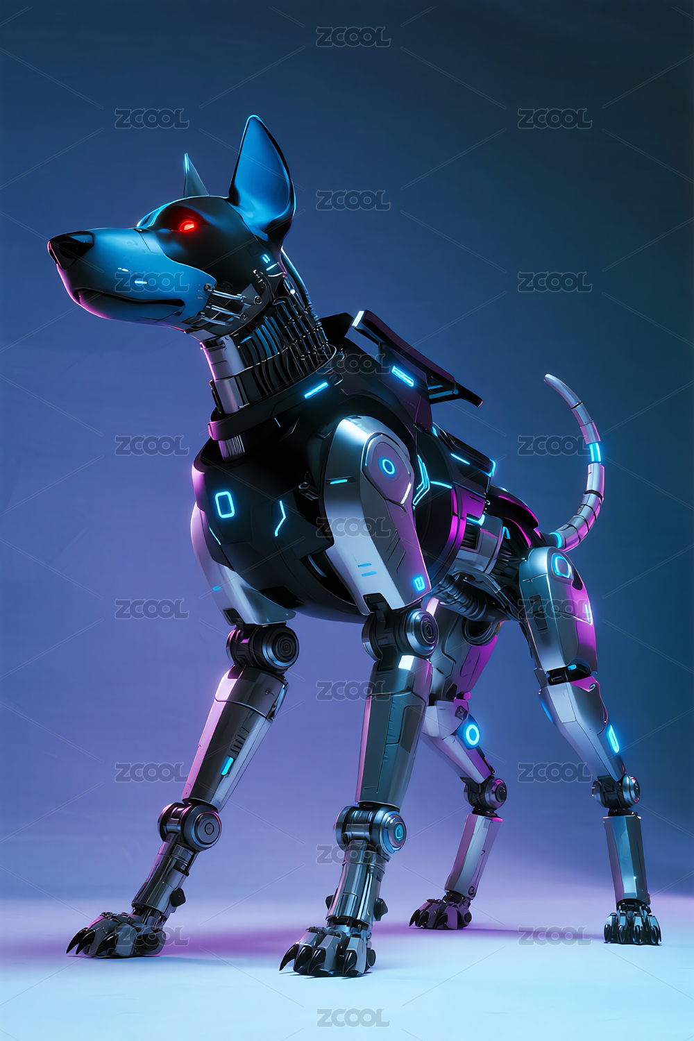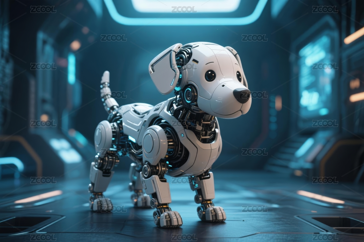 场景,空间,氛围,设计,蓝色,机械犬,赛博,朋克,金属,科幻