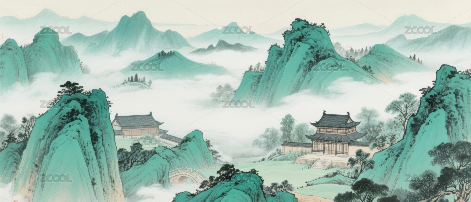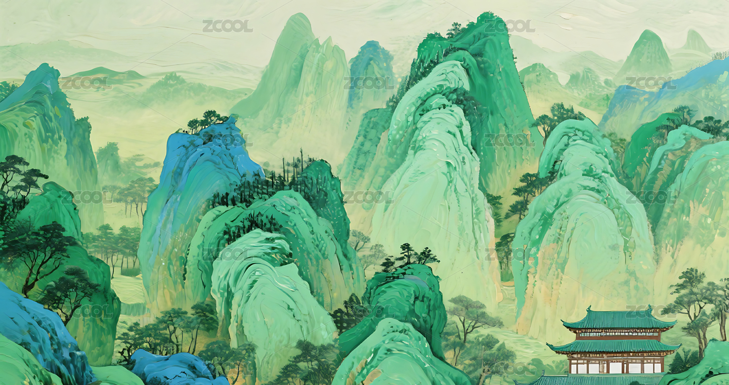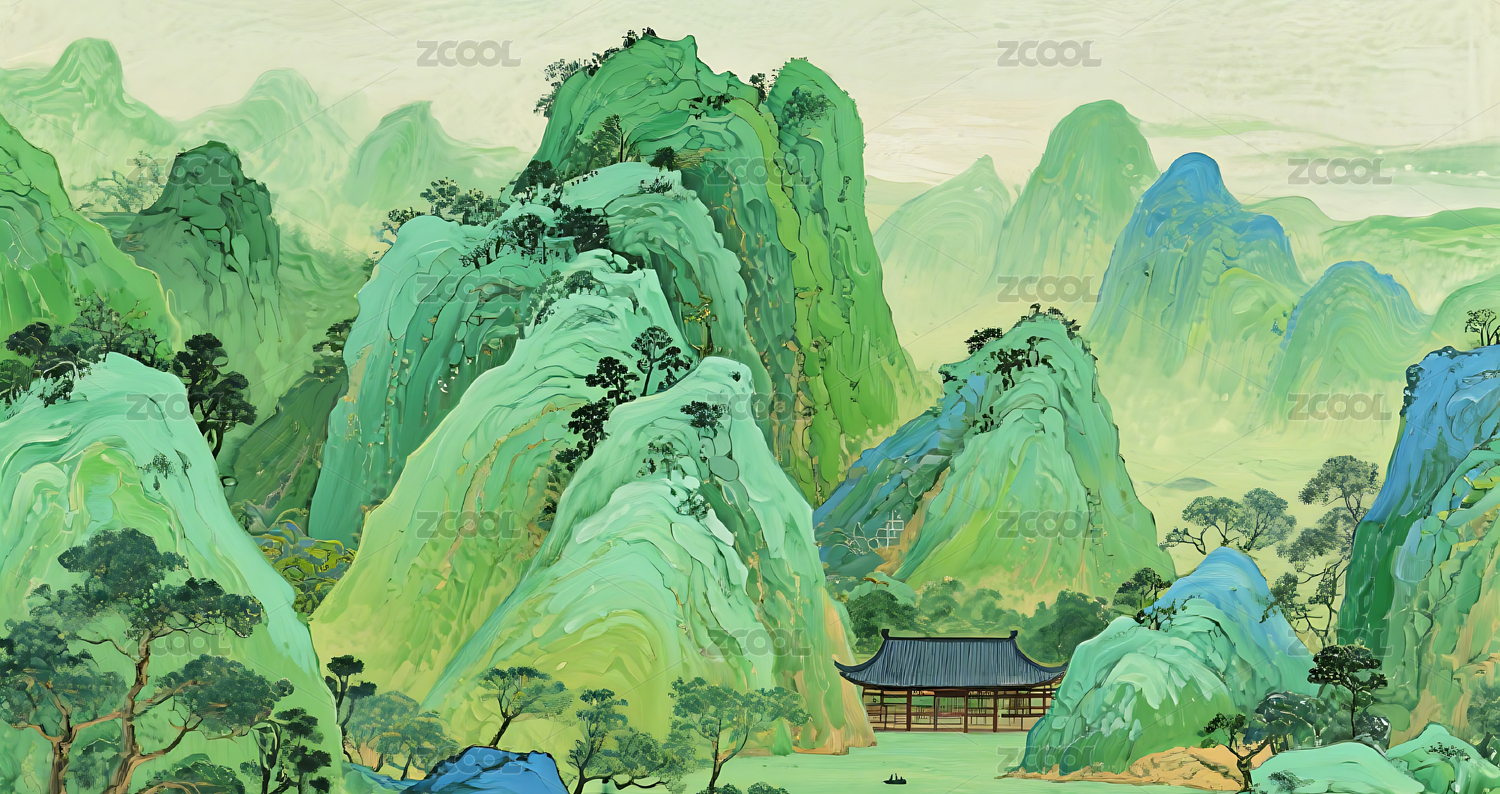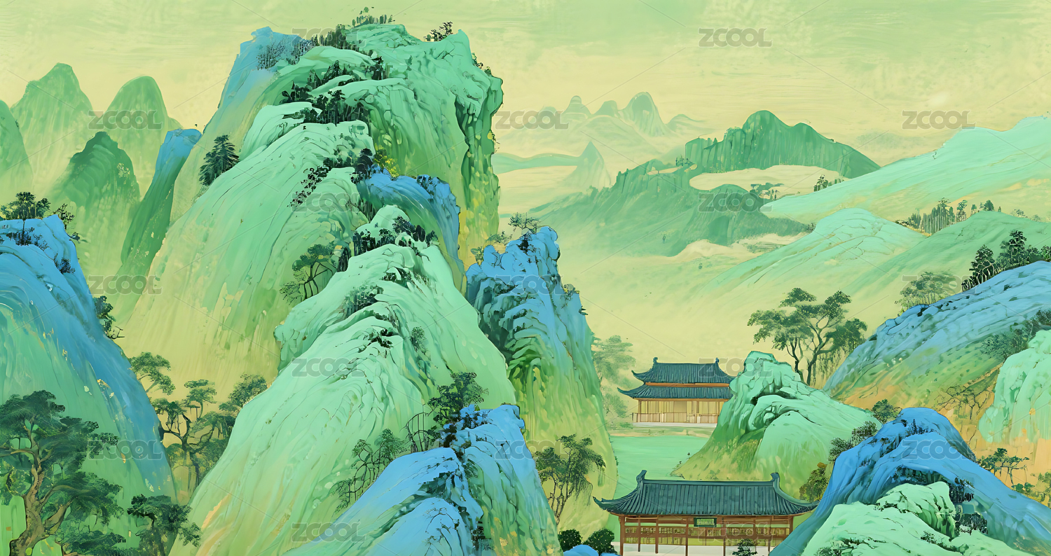 青绿山水国风绘画场景