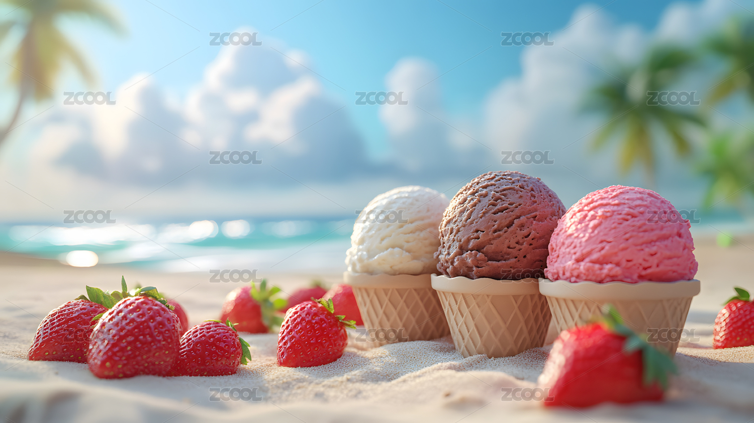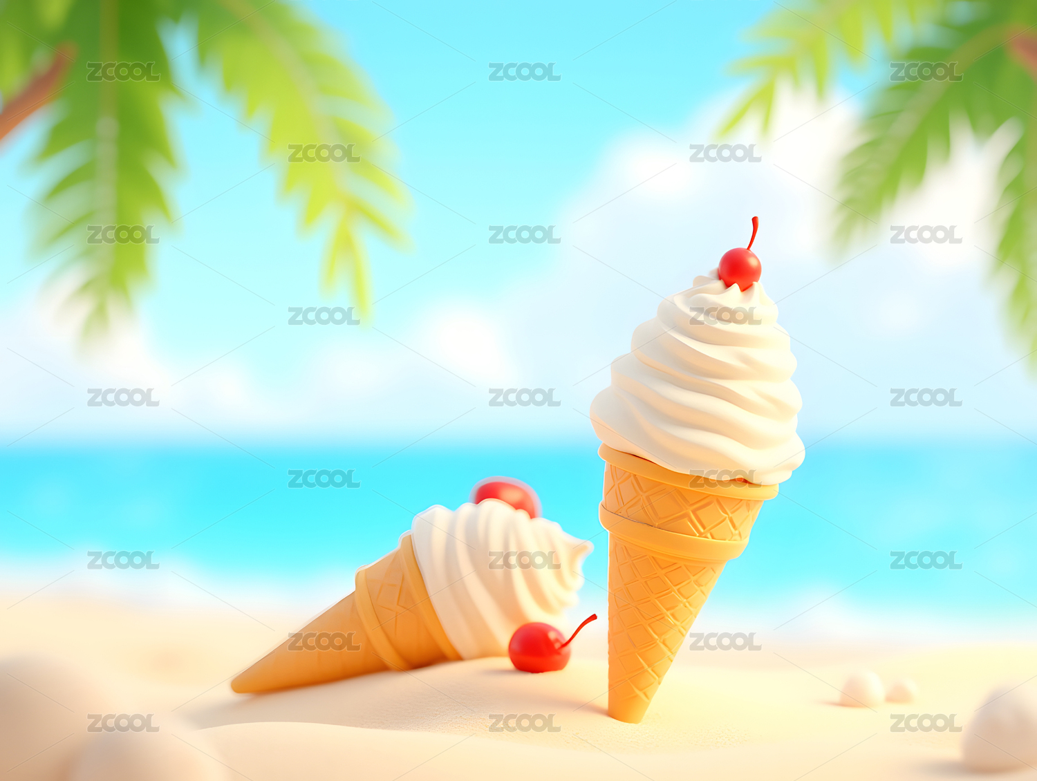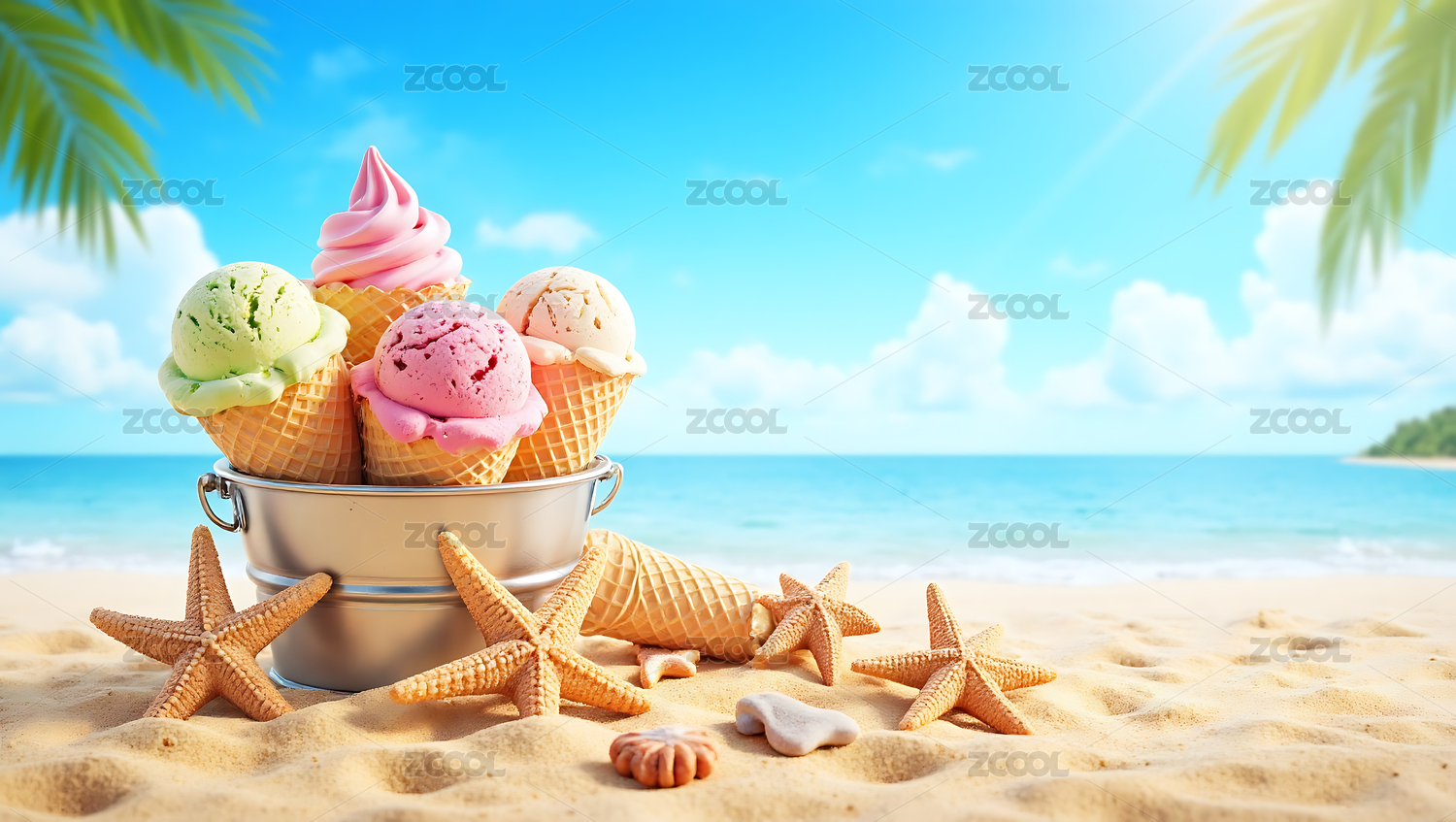 海边,沙滩,度假,贝壳,背景,海洋,粉色,棕榈树,海星,冰淇淋