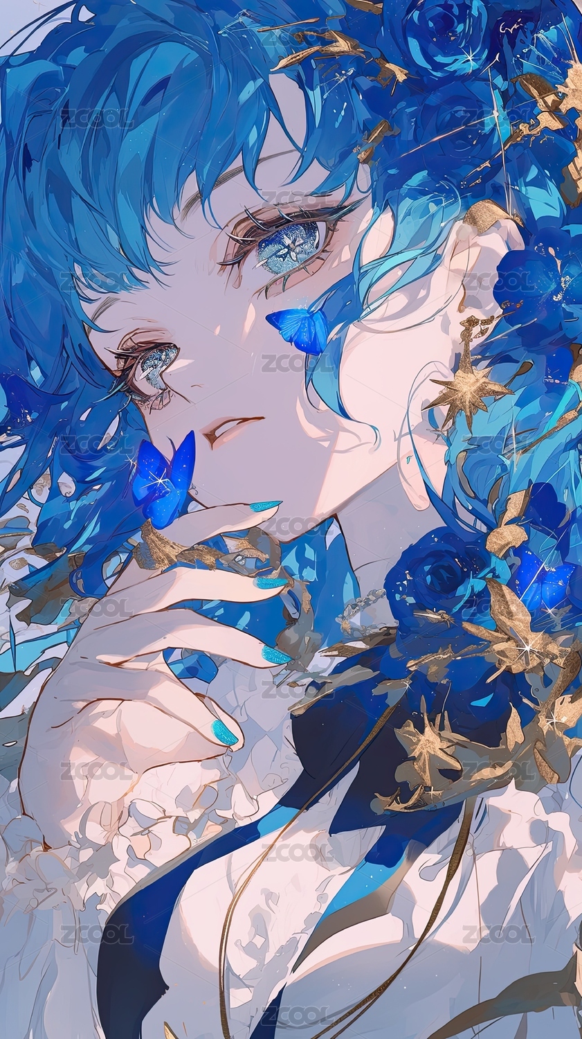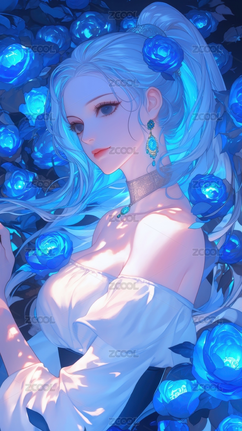 少女,卡通,插画,梦幻,长发,艺术,背景,环境,花朵,温柔