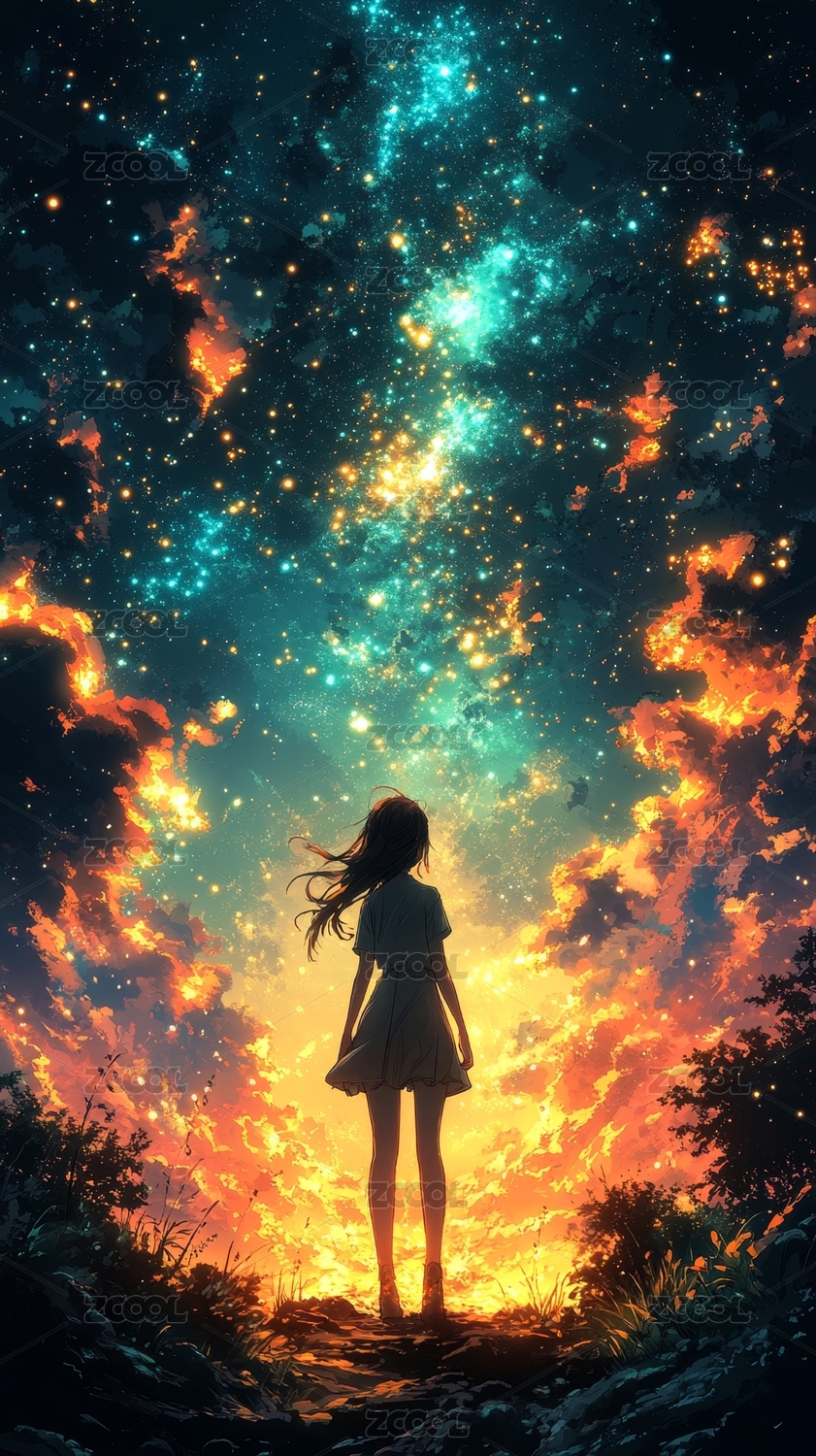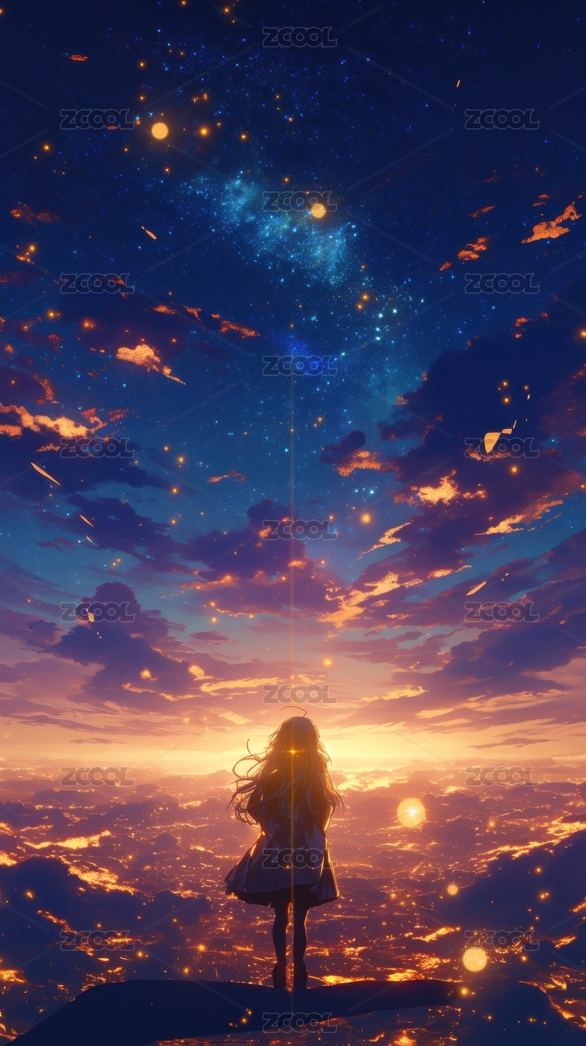 卡通,插画,梦幻,光影,艺术,背景,色彩,创意,夜晚,橙色