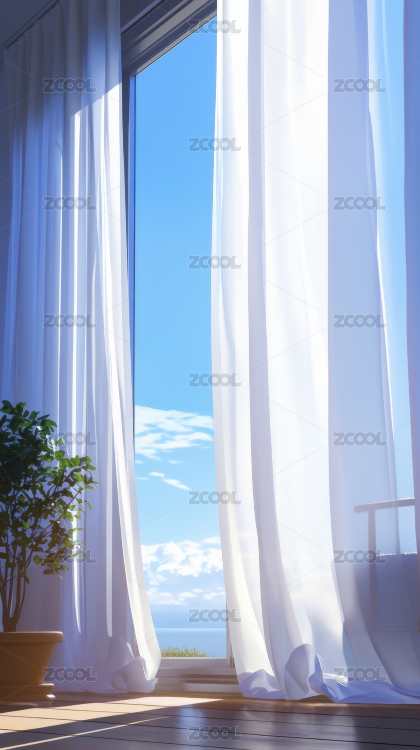 自然,风景,宁静,清新,阳光,明亮,窗户,窗帘,室内,舒适