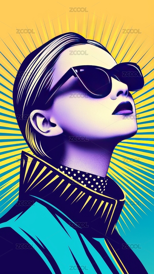 炫彩复古美式蒸汽波风格时尚美女头像