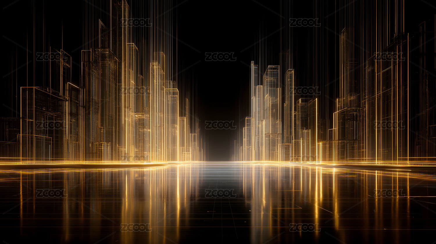 建筑,城市,未来,线条,科技,虚幻,璀璨,意境,金色,夜景