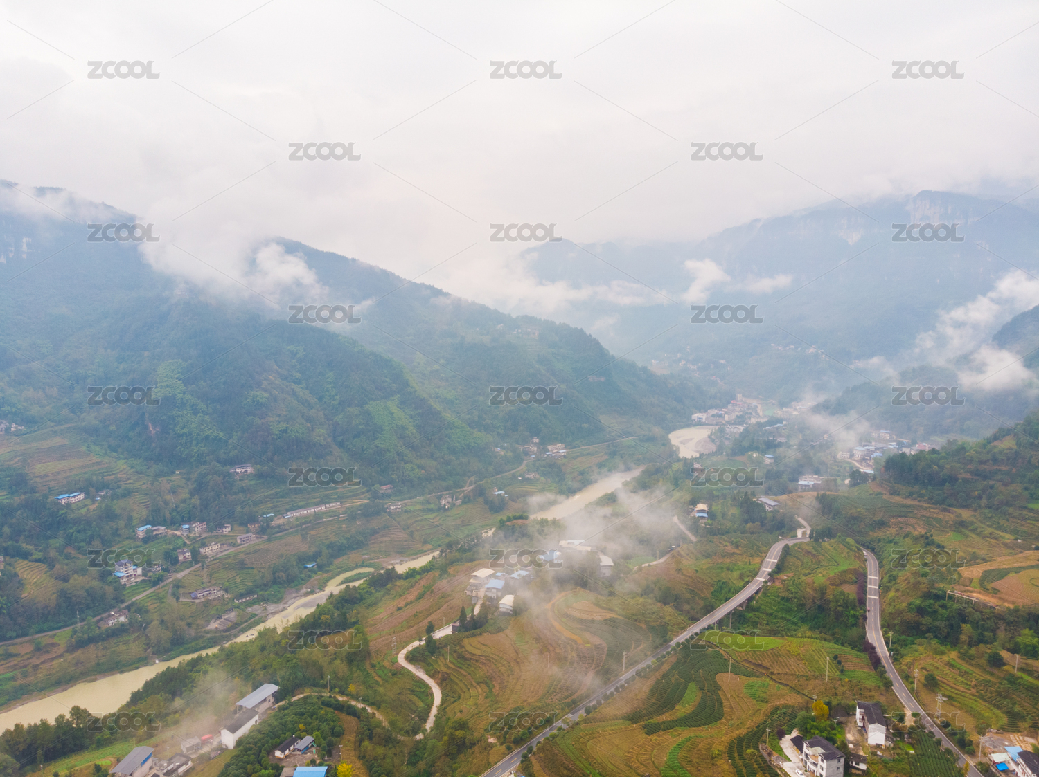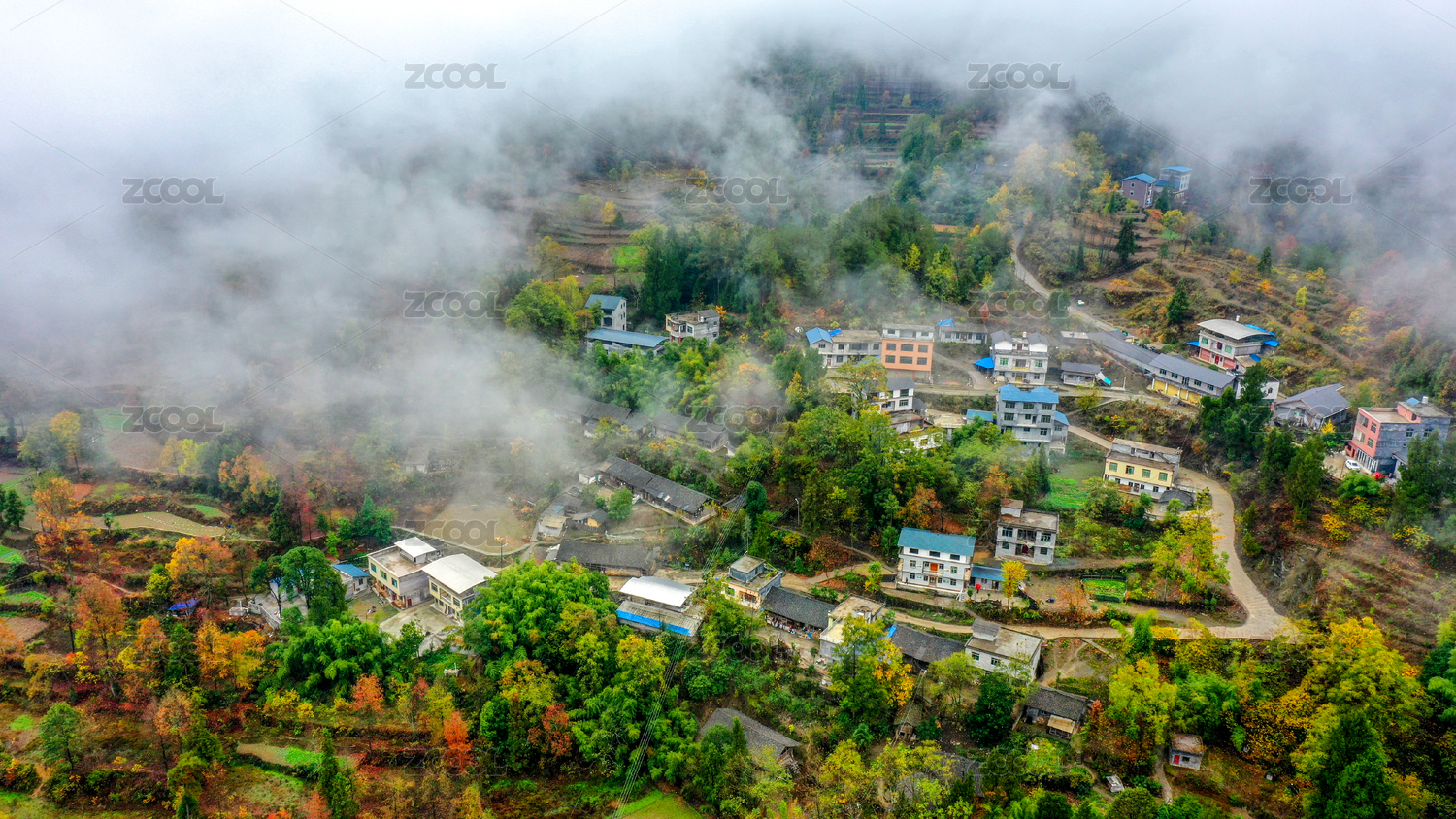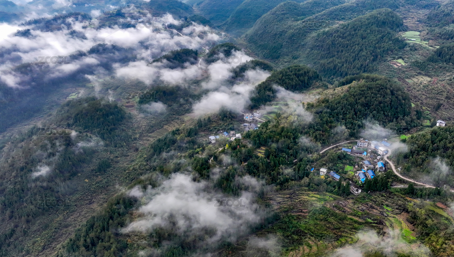 中国,重庆,山区,山村,云雾,村落,田园风光,自然景观,乡村,绿色
