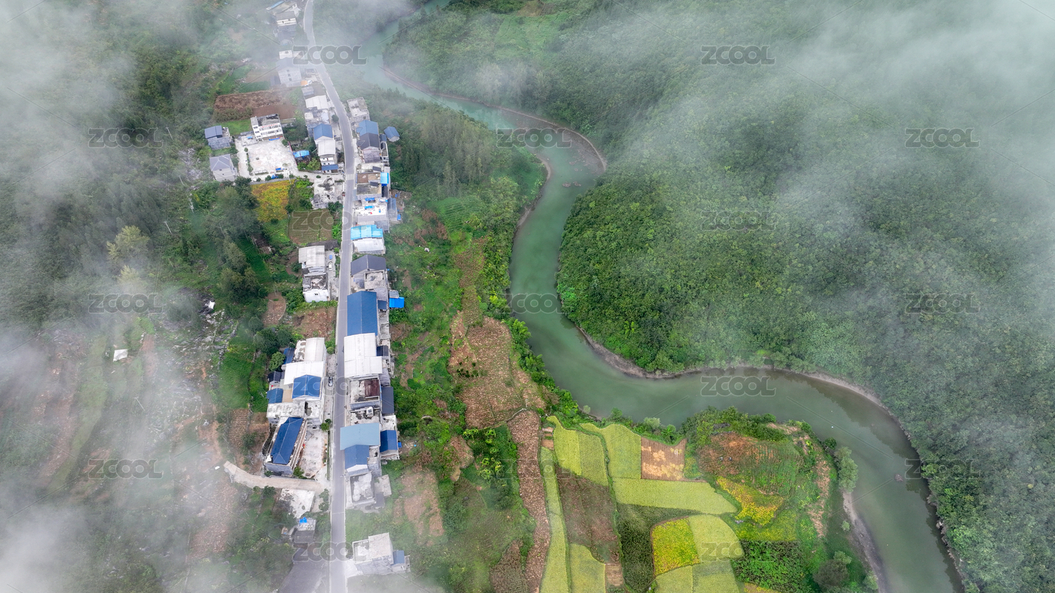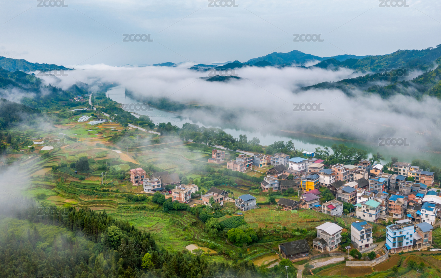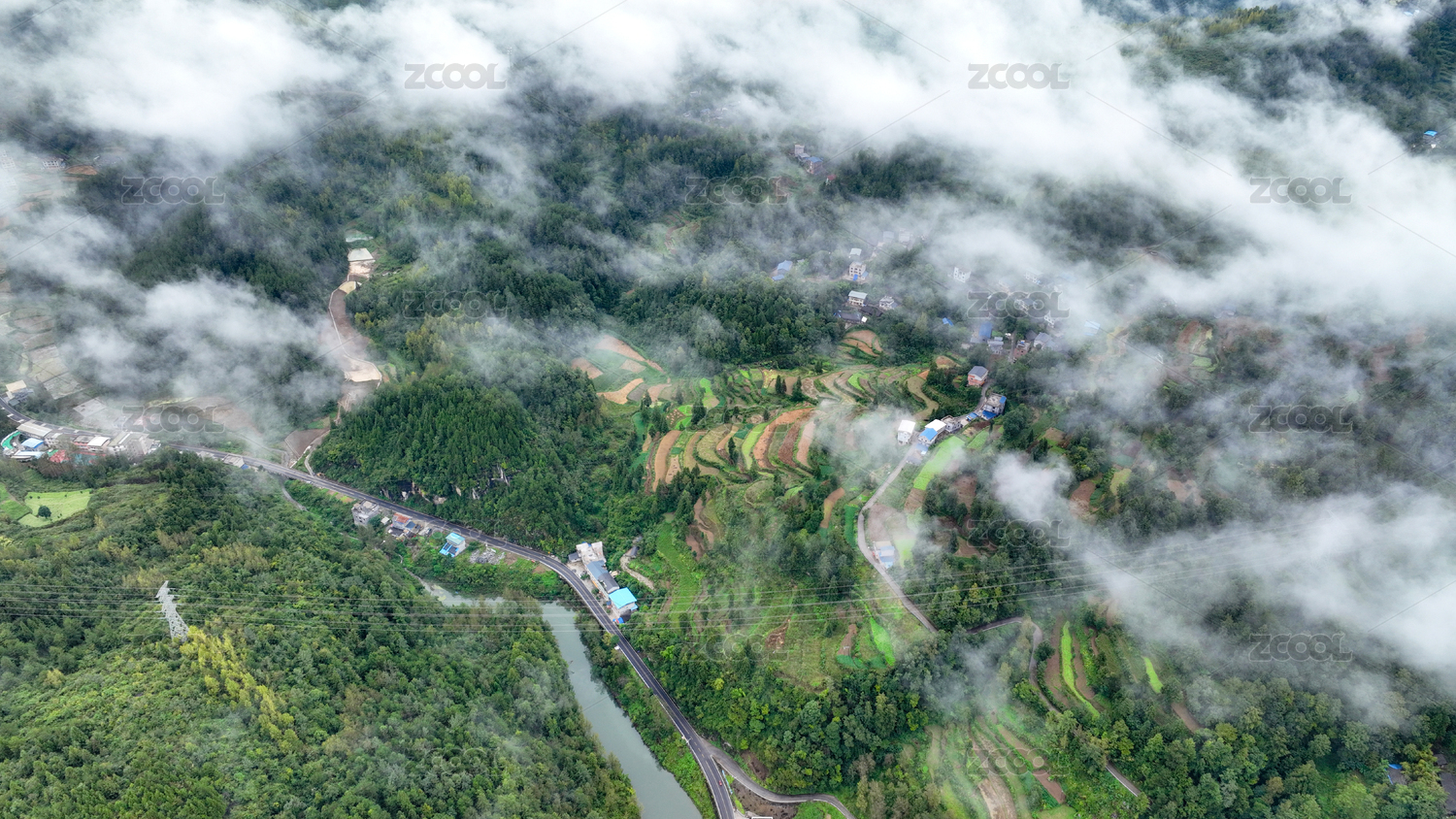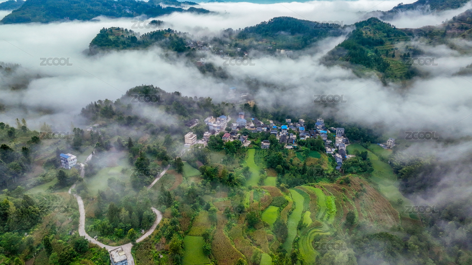中国,重庆,山区,山村,云雾,村落,田园风光,自然景观,乡村,绿色