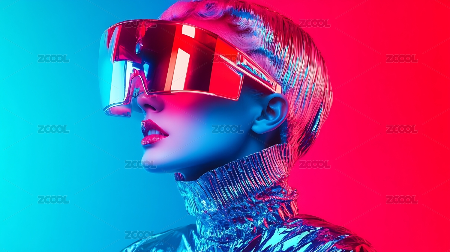 赛博朋克vr数字科技未来炫酷人像特写背景