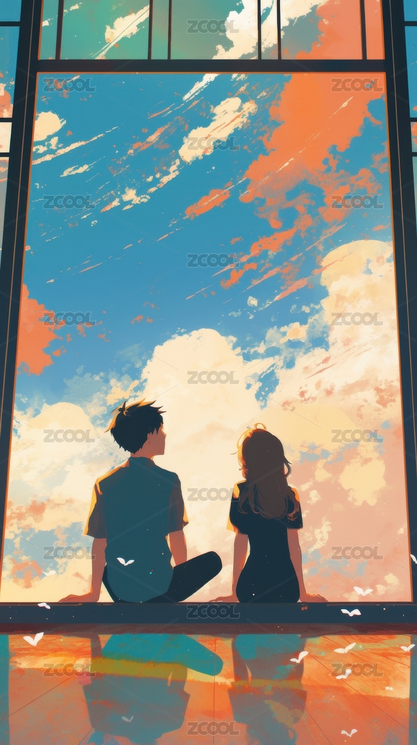 少女,卡通,插画,微笑,青春,户外,阳光,温馨,街头,自然光