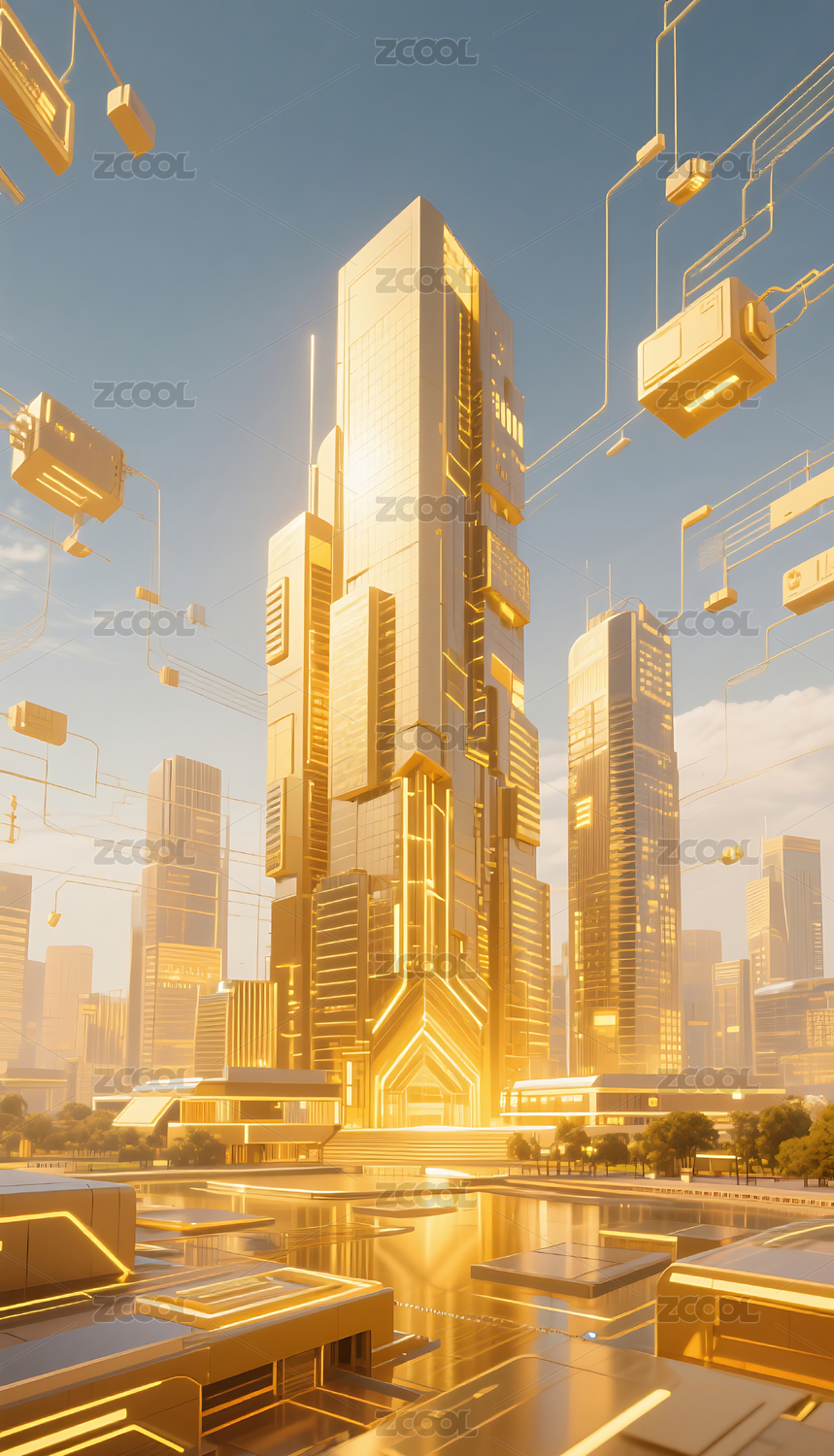 金色科技未来城市建筑背景