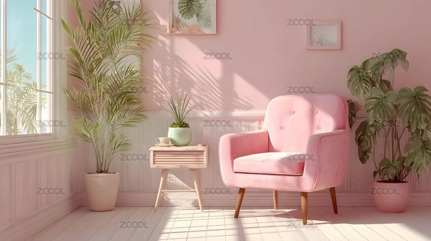 阳光,室内,现代,粉色,墙壁,空间,地板,简约,装饰,柔和