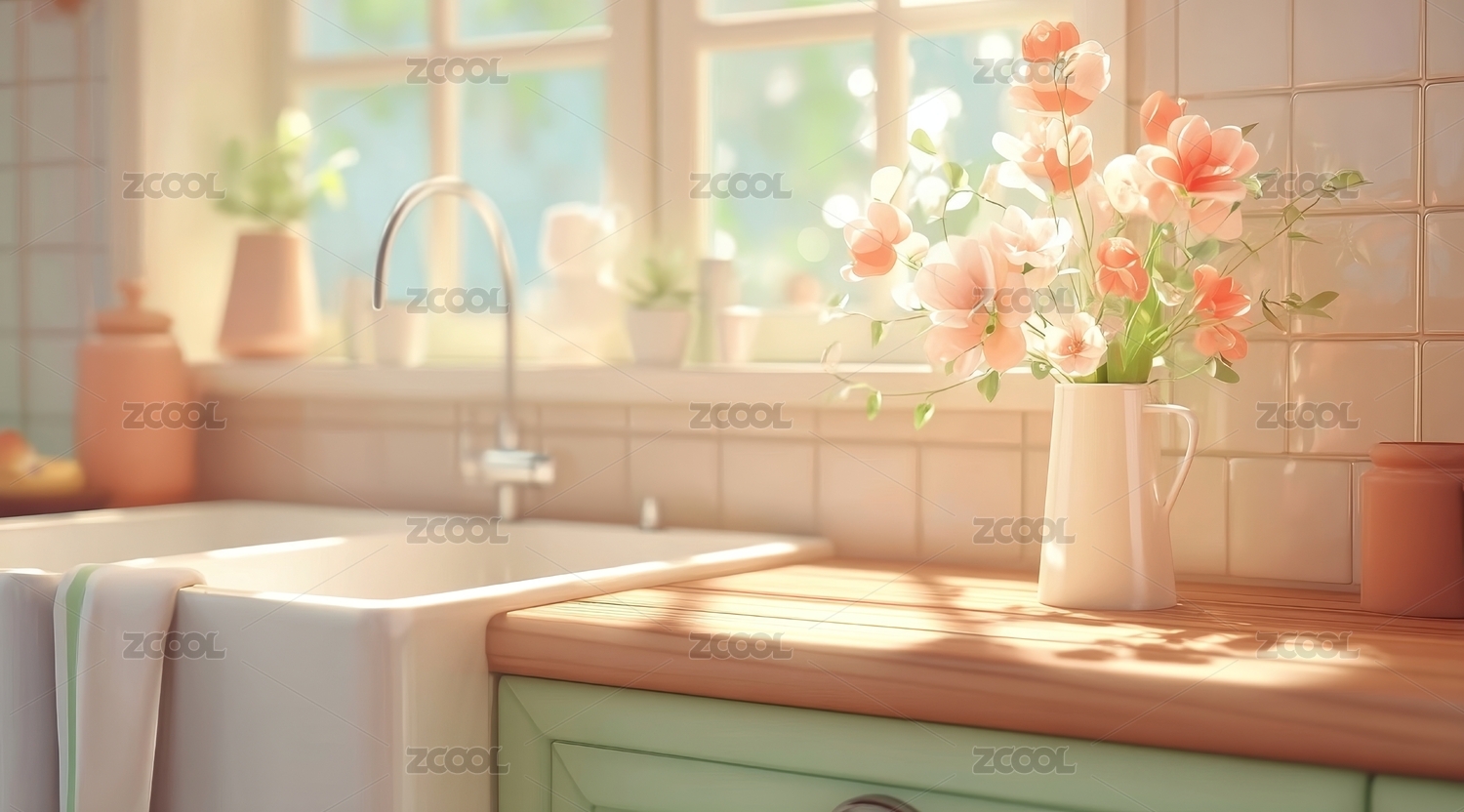 阳光,玻璃,室内,白色,厨房,装饰,水龙头,花瓶,家居,窗户