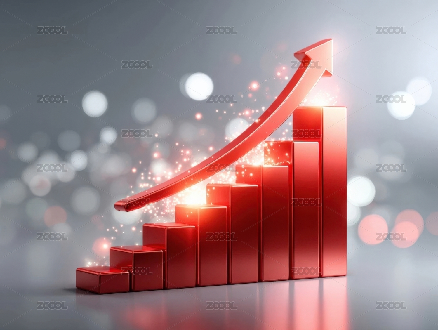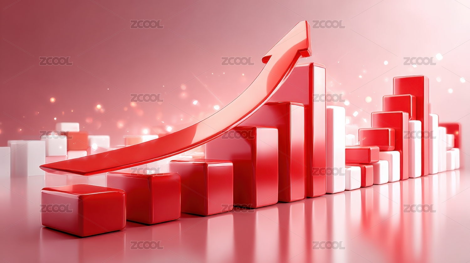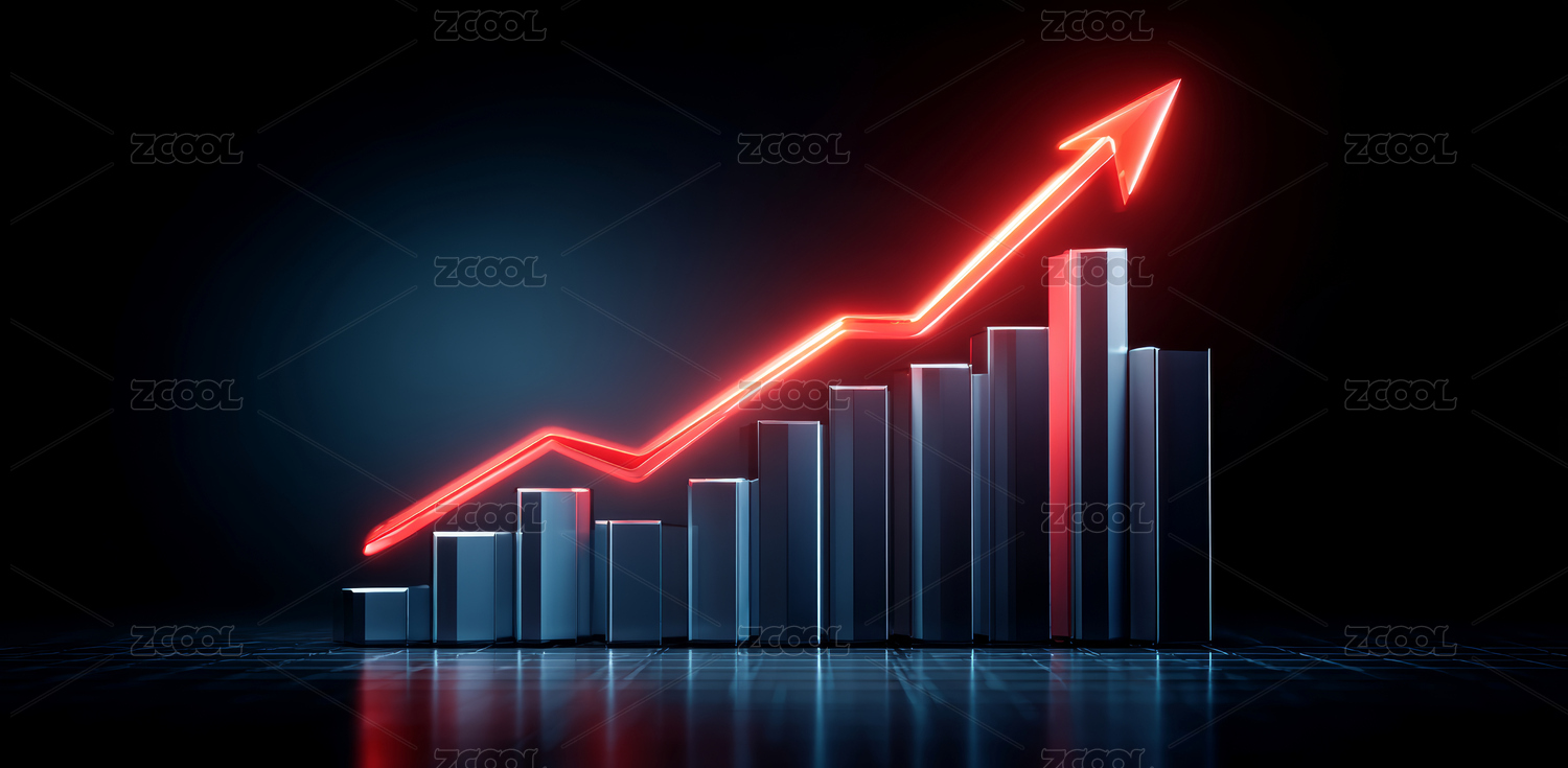 红金色渐变玻璃质感金融柱状图增长箭头背景