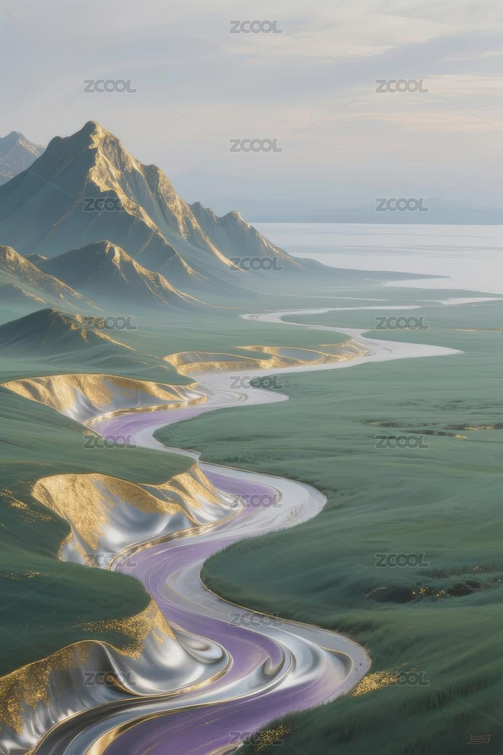自然,生态,色彩,云雾,和谐,景观,河流,层次,雪山,村庄