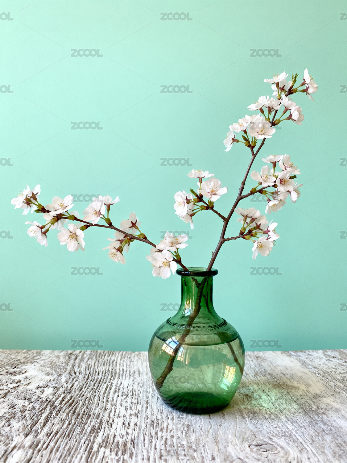 绿瓶樱花静物