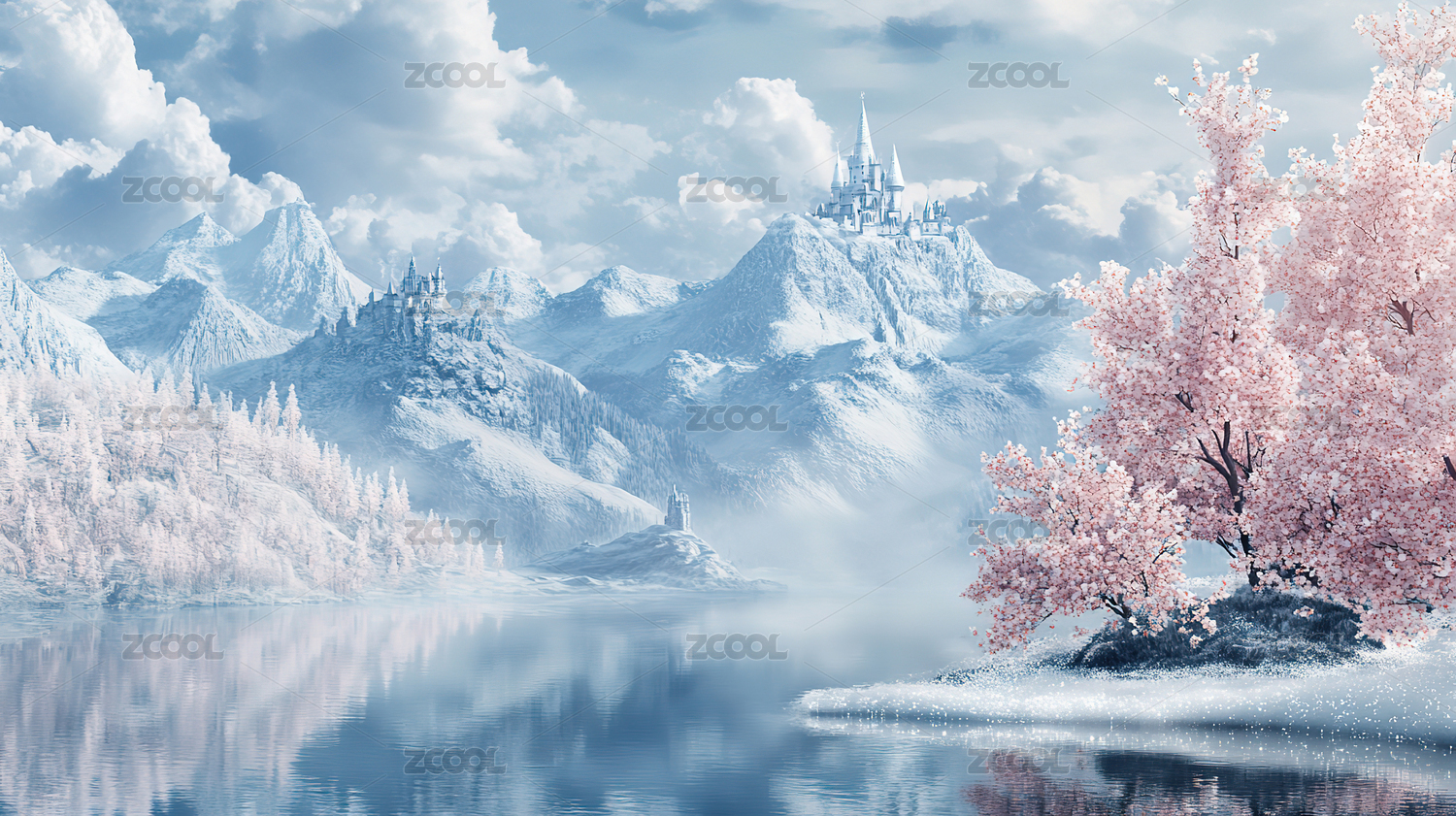 反射,建筑,梦幻,树木,山脉,雪景,天空,远山,宁静,神秘