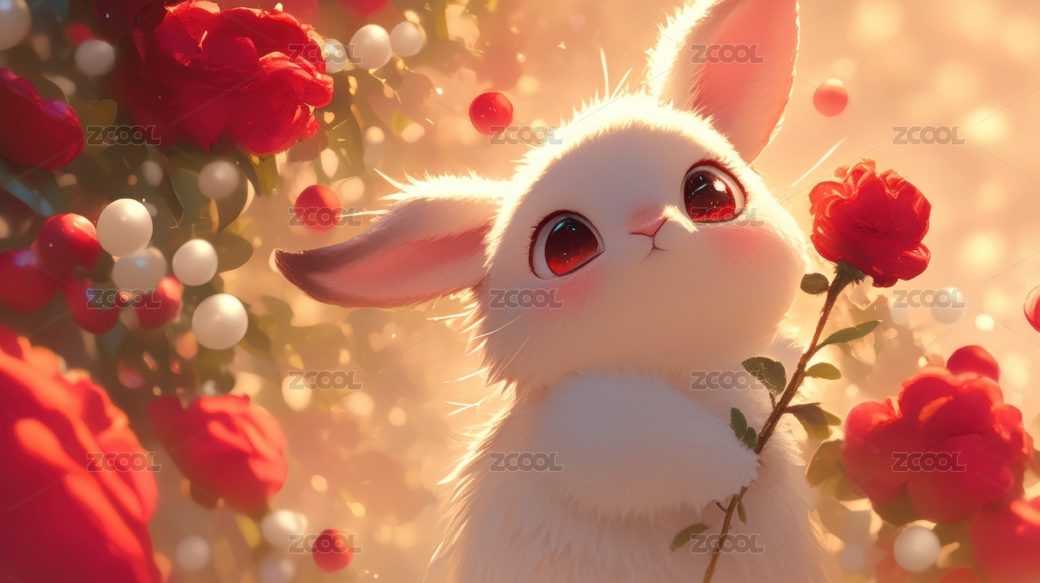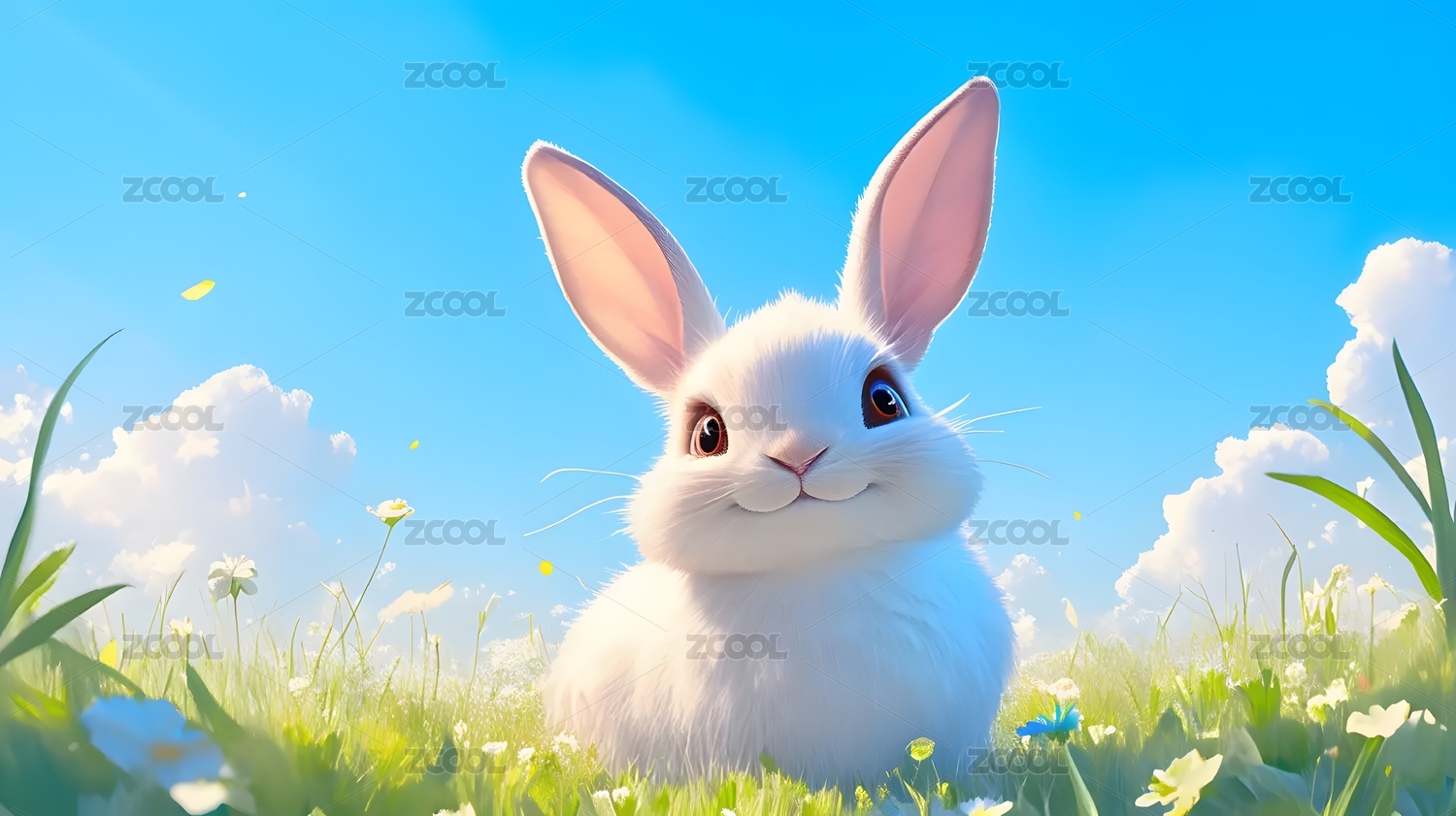 卡通,温柔,梦幻,可爱,艺术,眼睛,自然,户外,小白兔,花朵