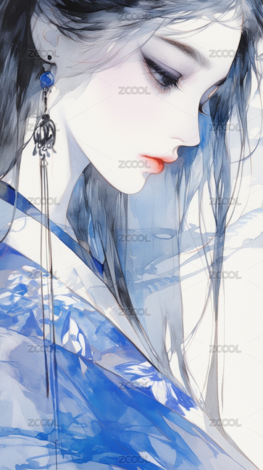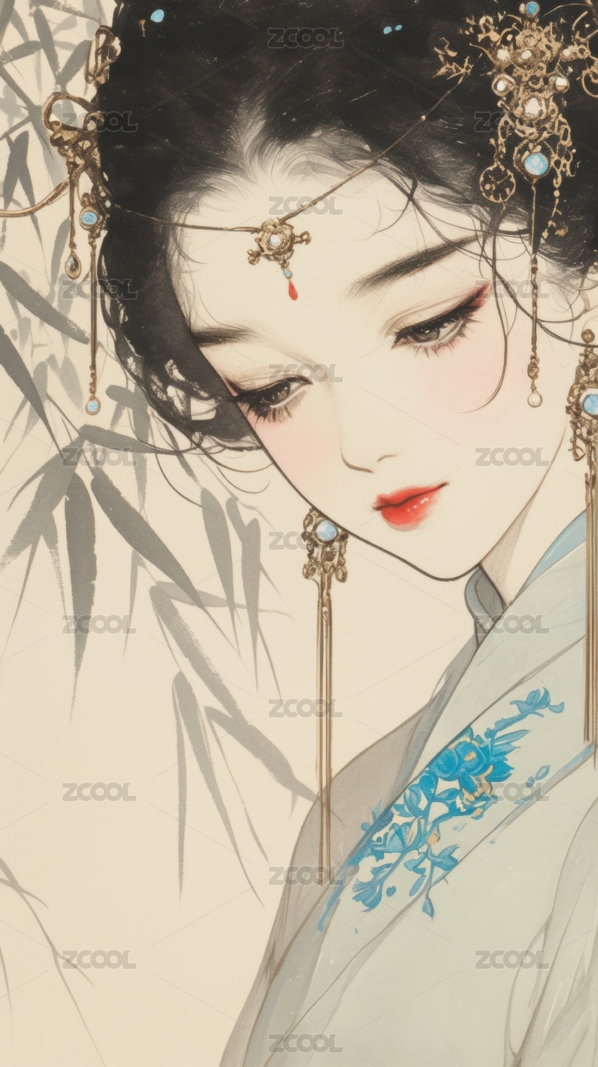 背景,艺术,表情,色彩,传统,服饰,绘画,细腻,装饰,发饰