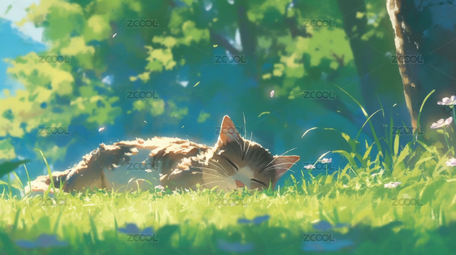 卡通,插画,梦幻,宁静,和谐,动物,温馨,艺术,绿色,阳光