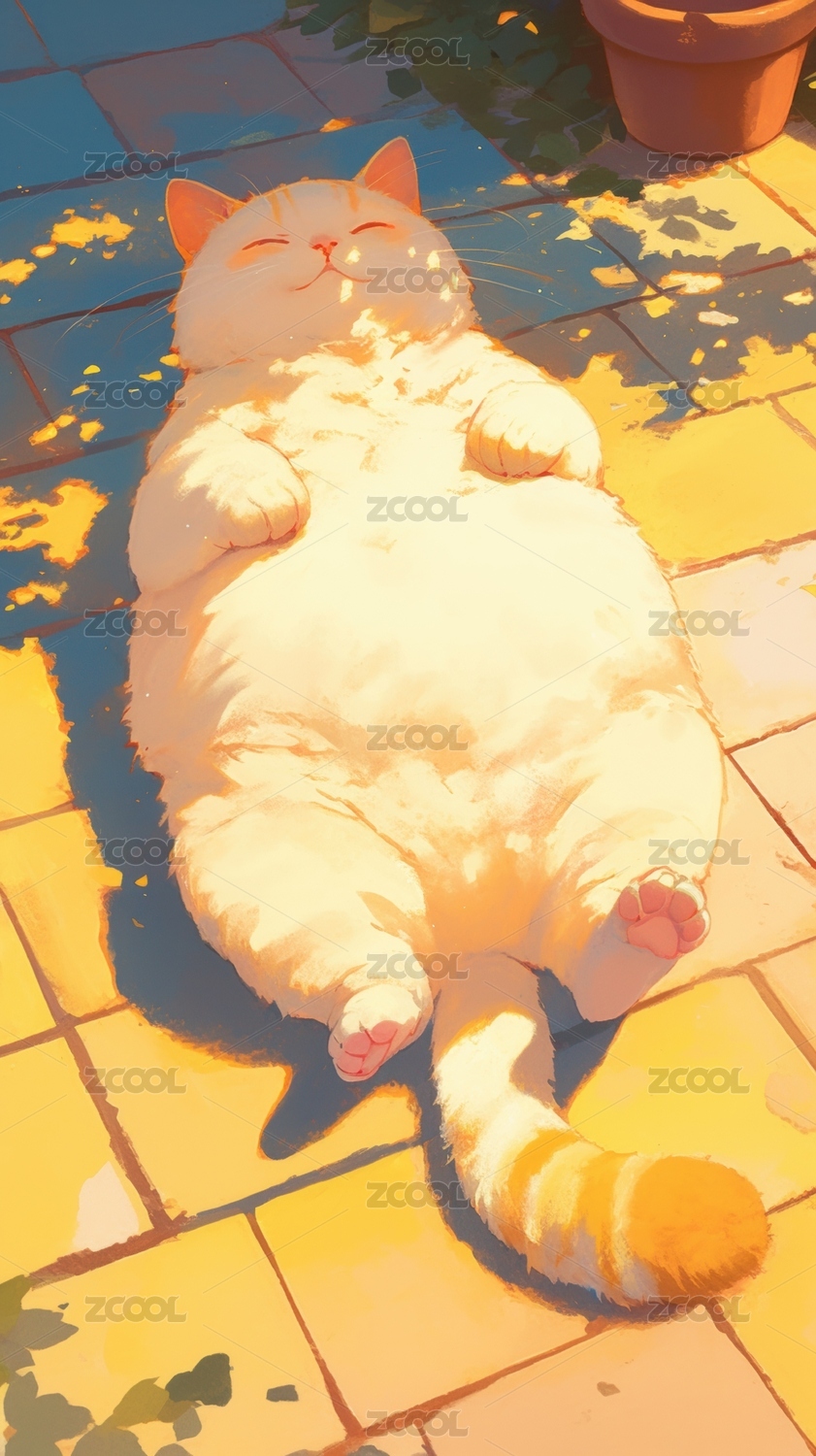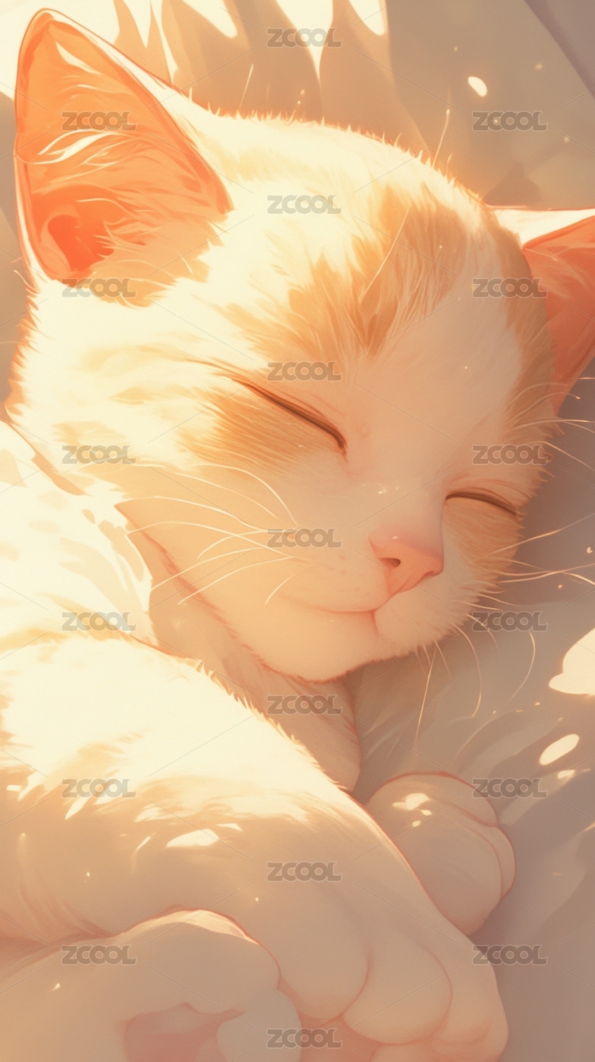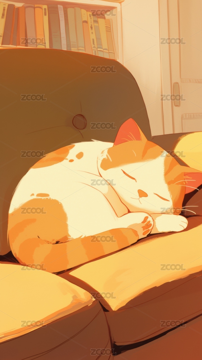卡通,插画,宠物,室内,温馨,阳光,光线,猫咪,窗户,植物
