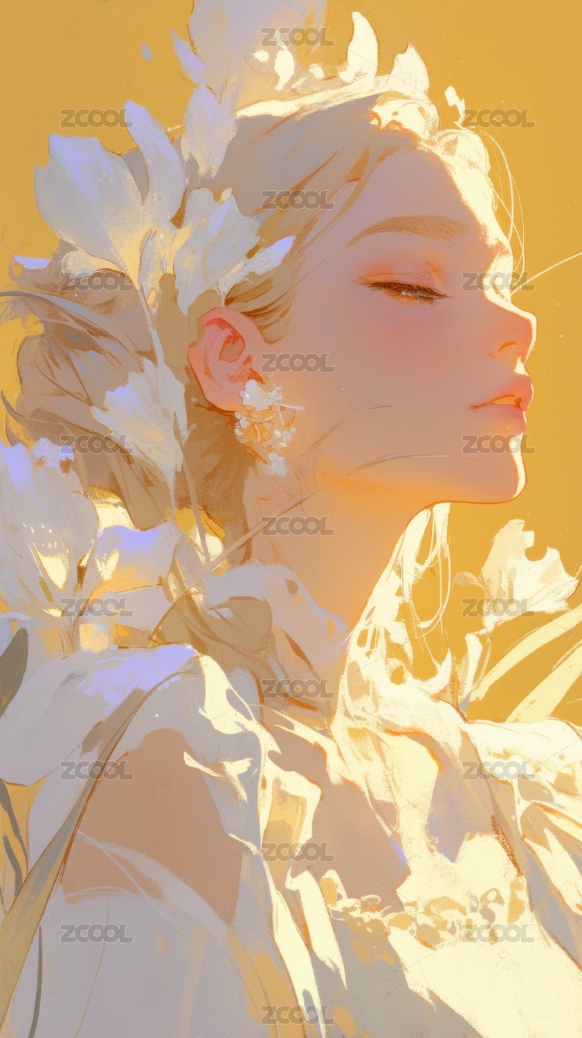 金色光芒中的侧脸女子