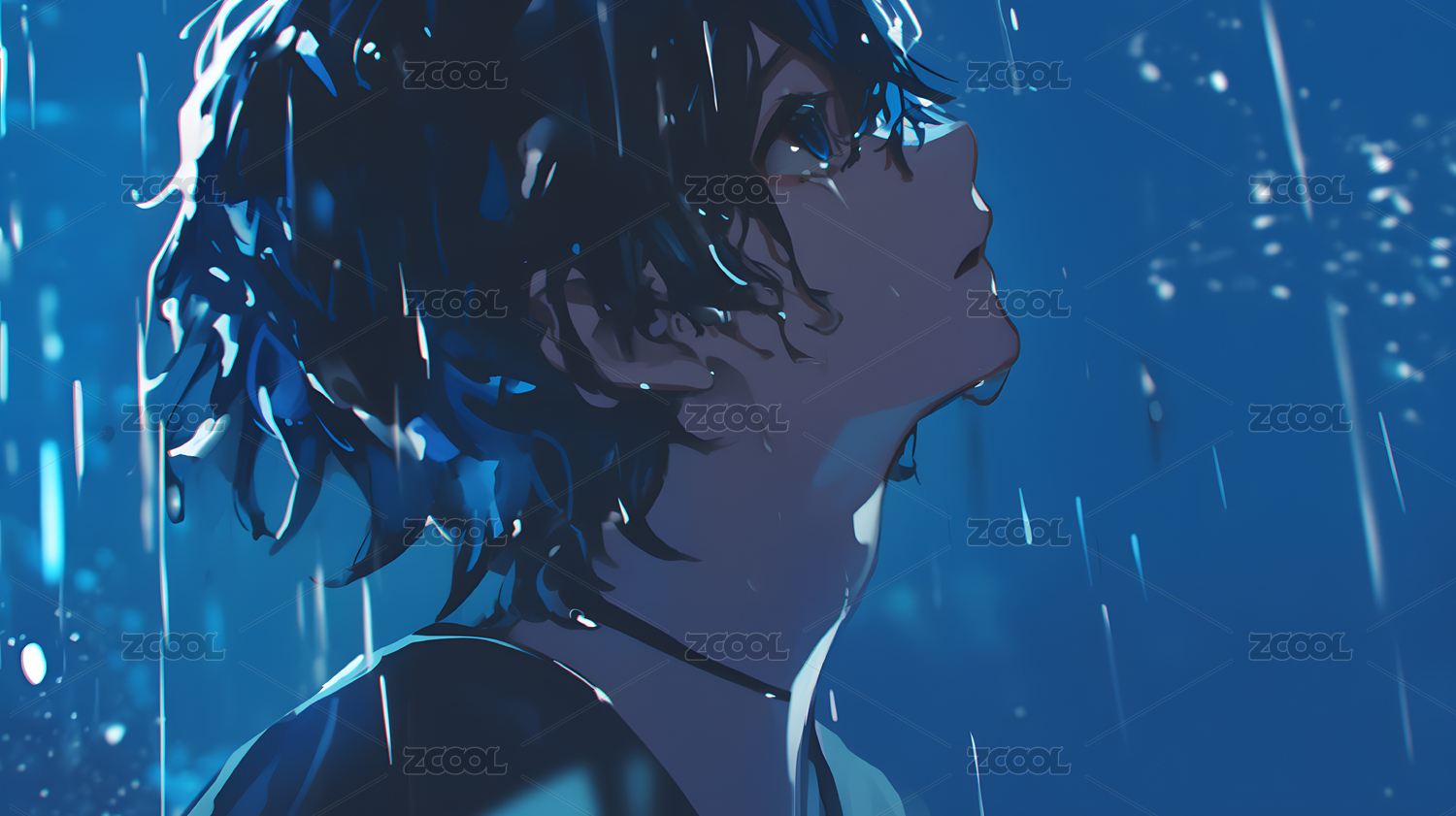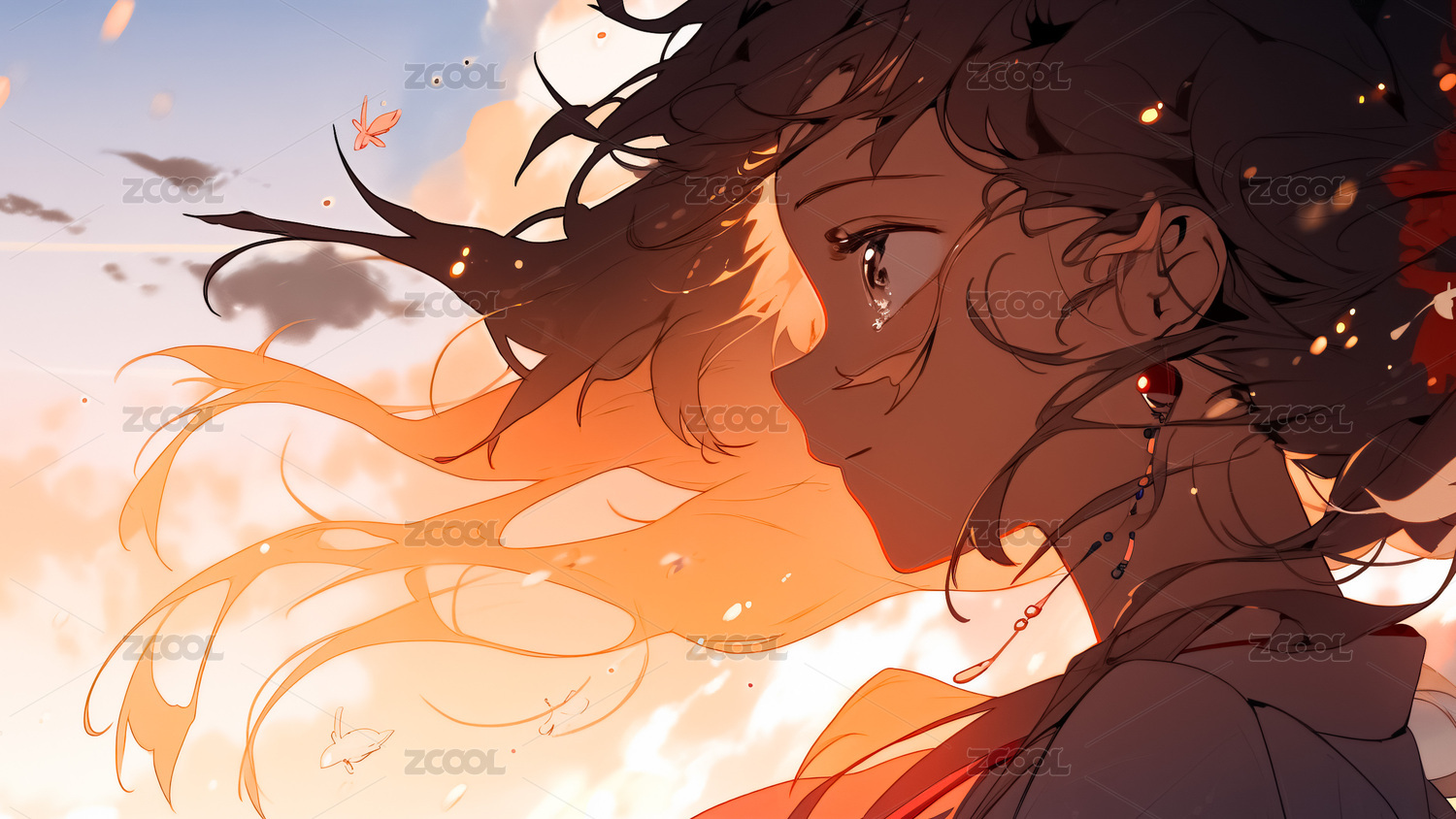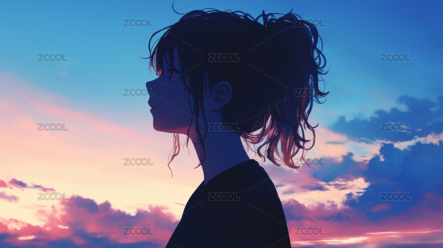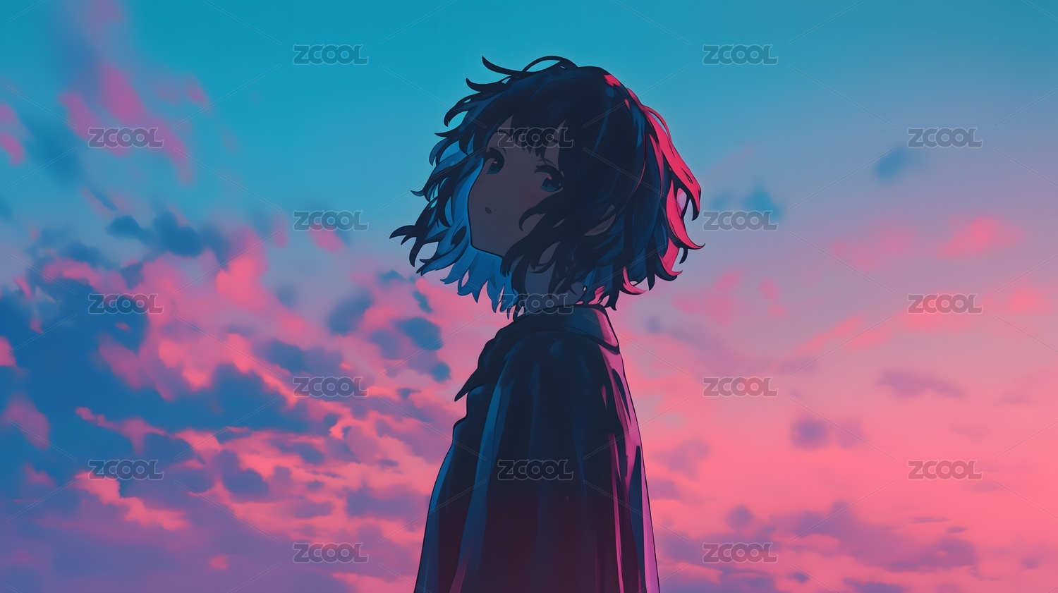 插画,艺术,环境,色彩,梦幻,夜晚,长发,背景,天空,云彩