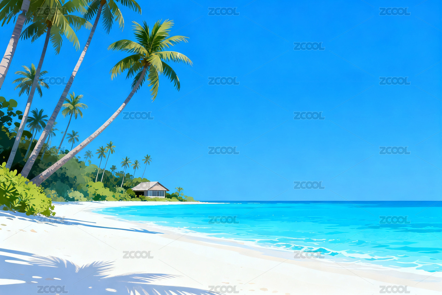 海边,白云,阳光,沙滩,蓝天,棕榈树,风景,海洋,度假,休闲