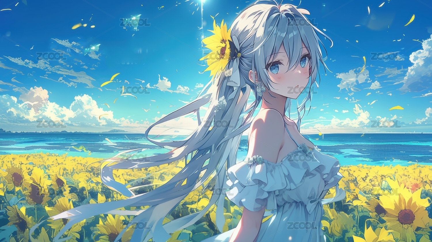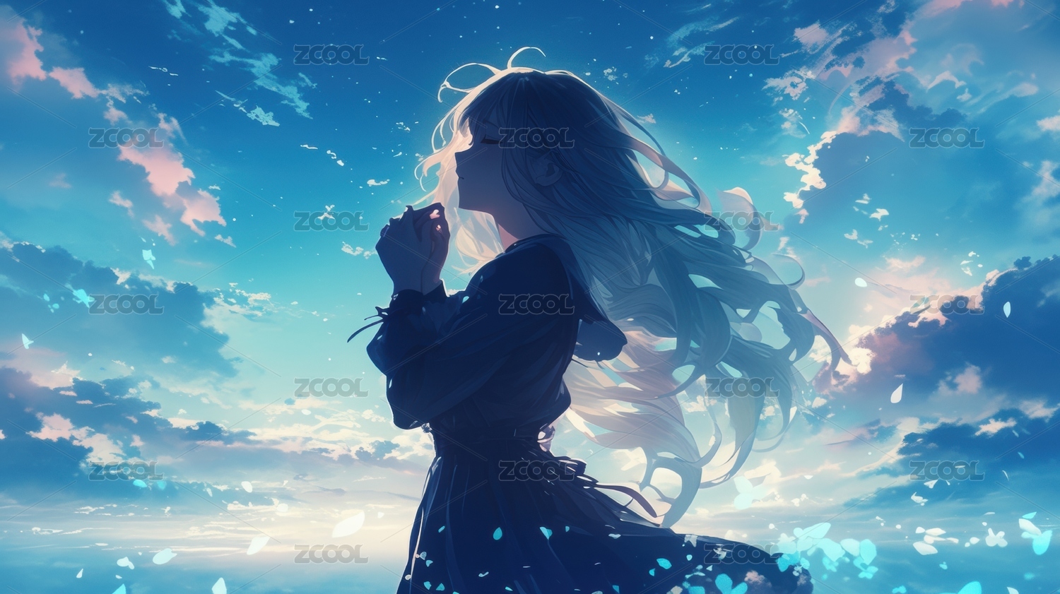 动漫女孩宫崎骏风格新海诚风格壁纸背景