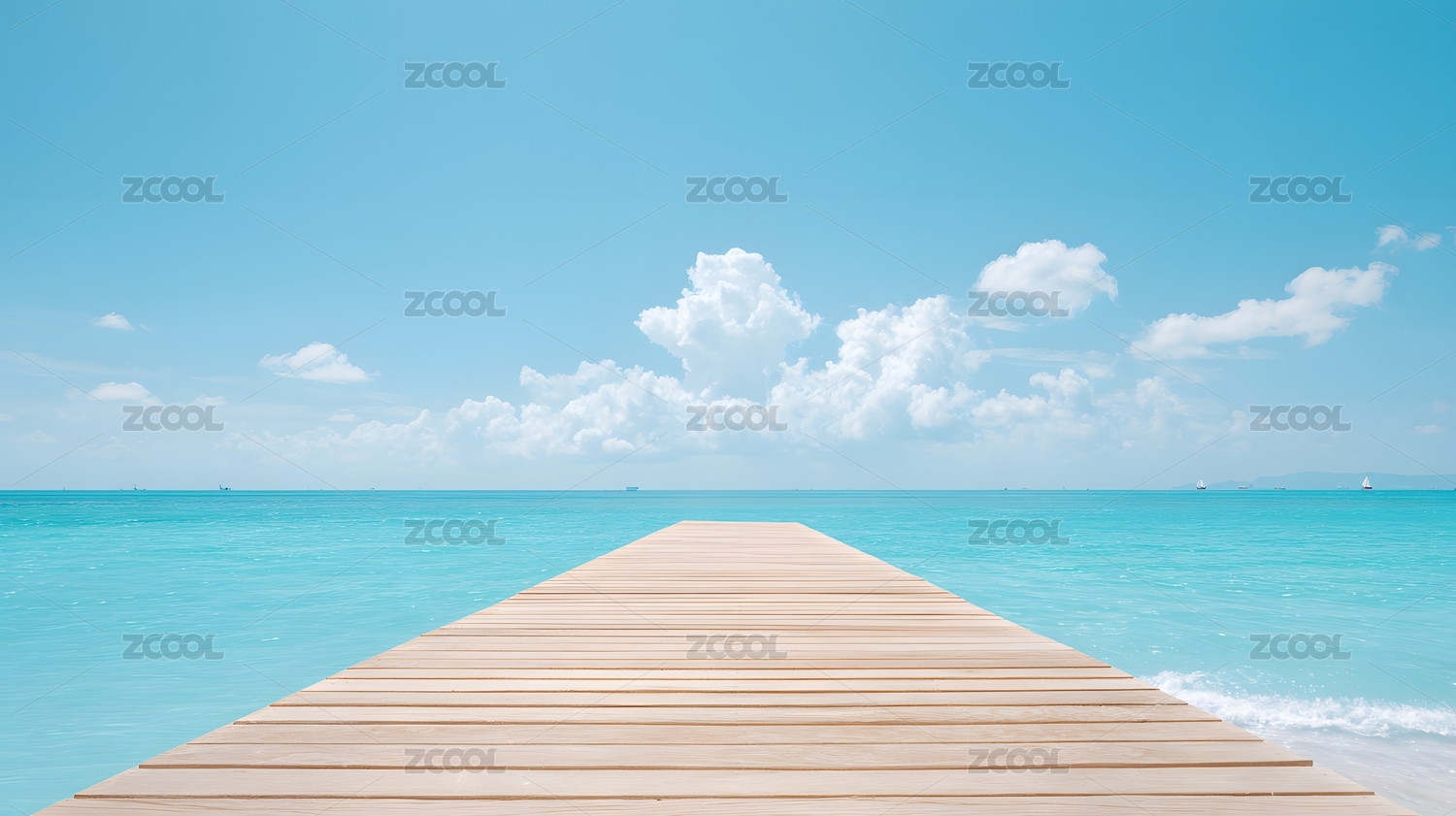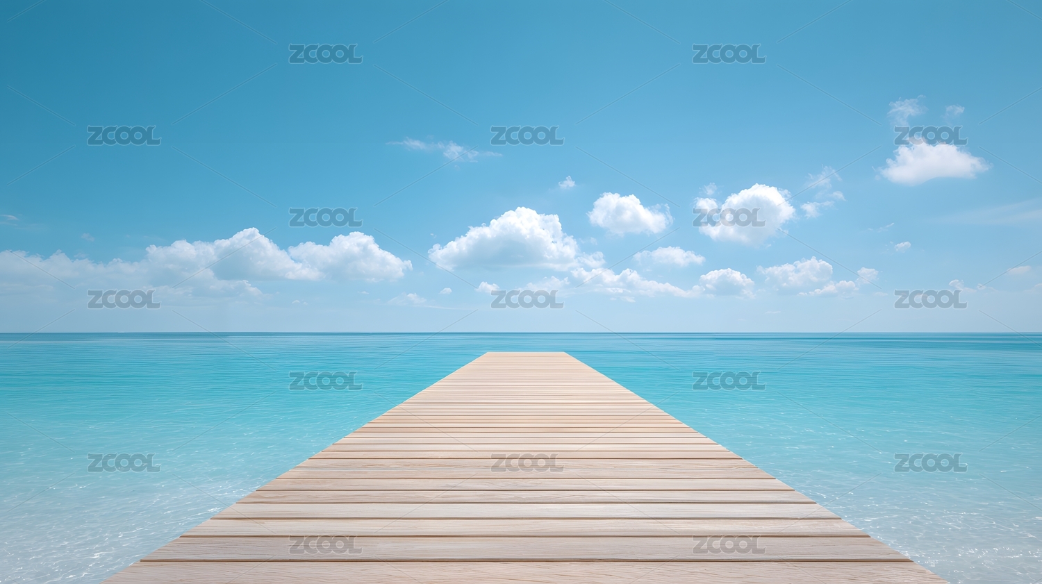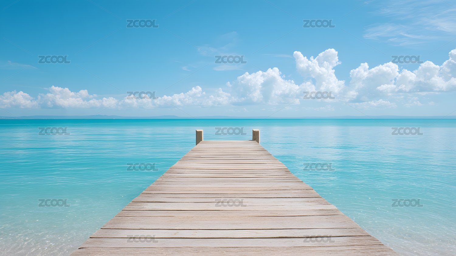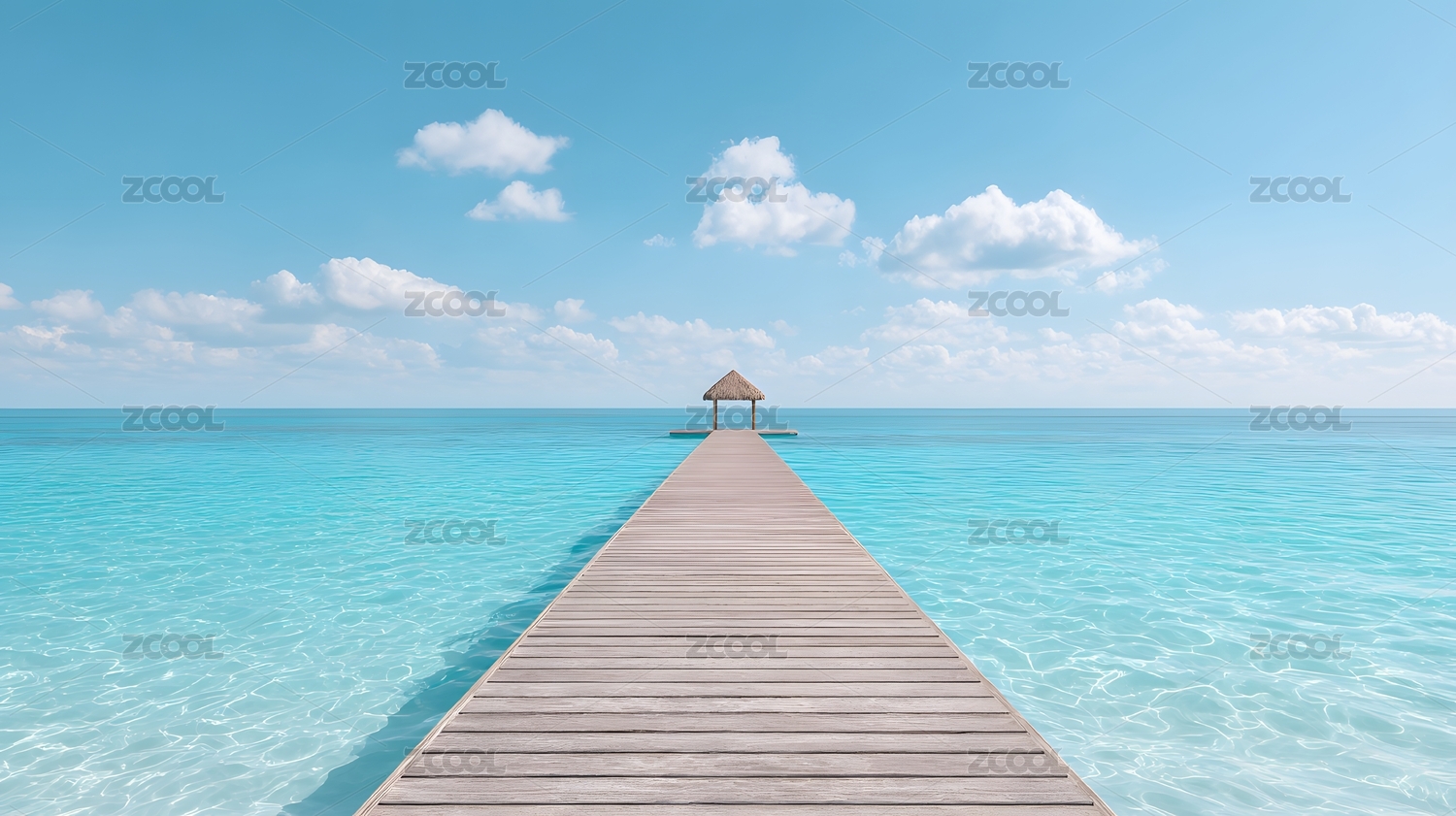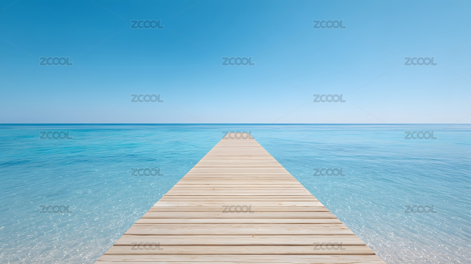 延伸至碧海蓝天的木质栈桥