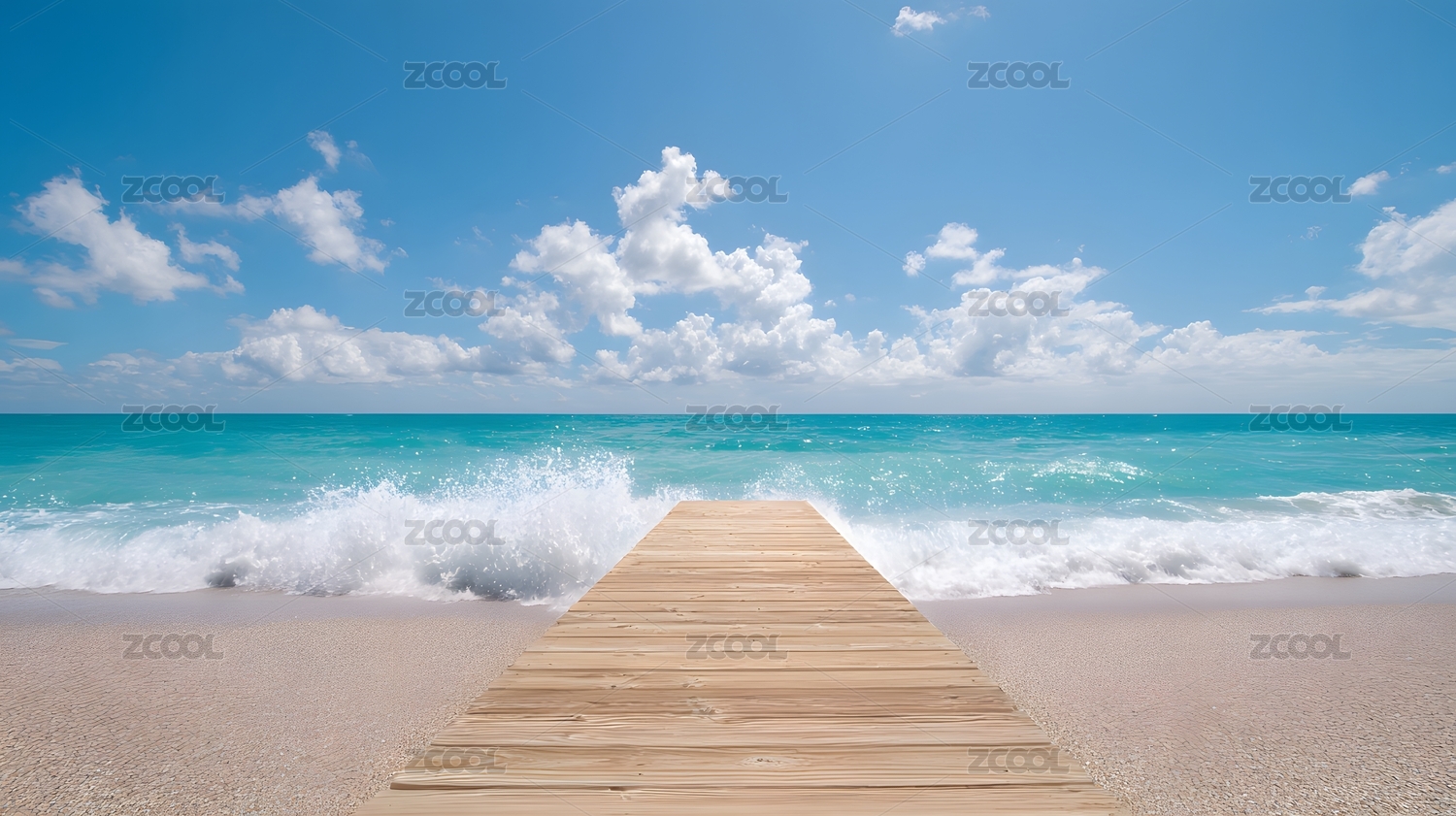 沙滩木栈道通向碧海蓝天