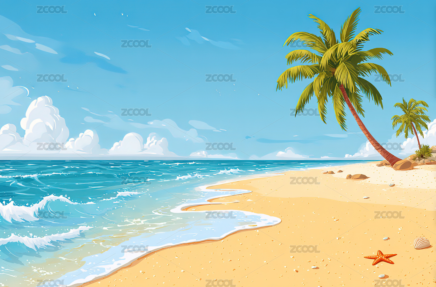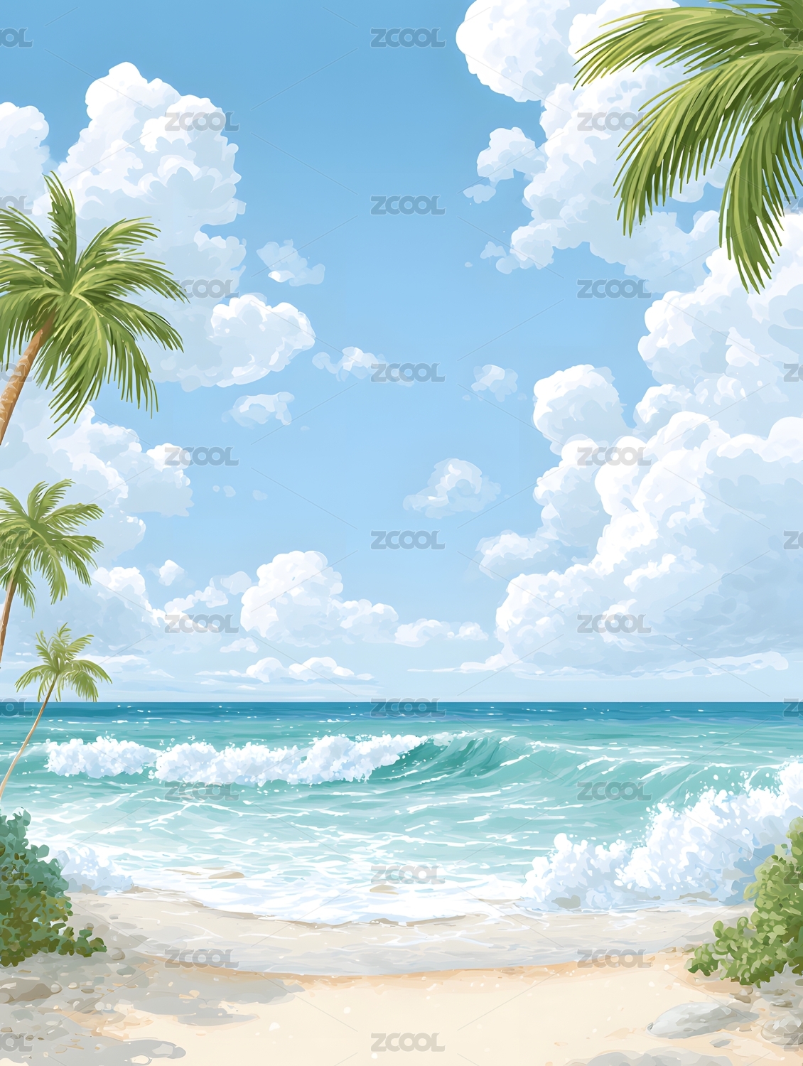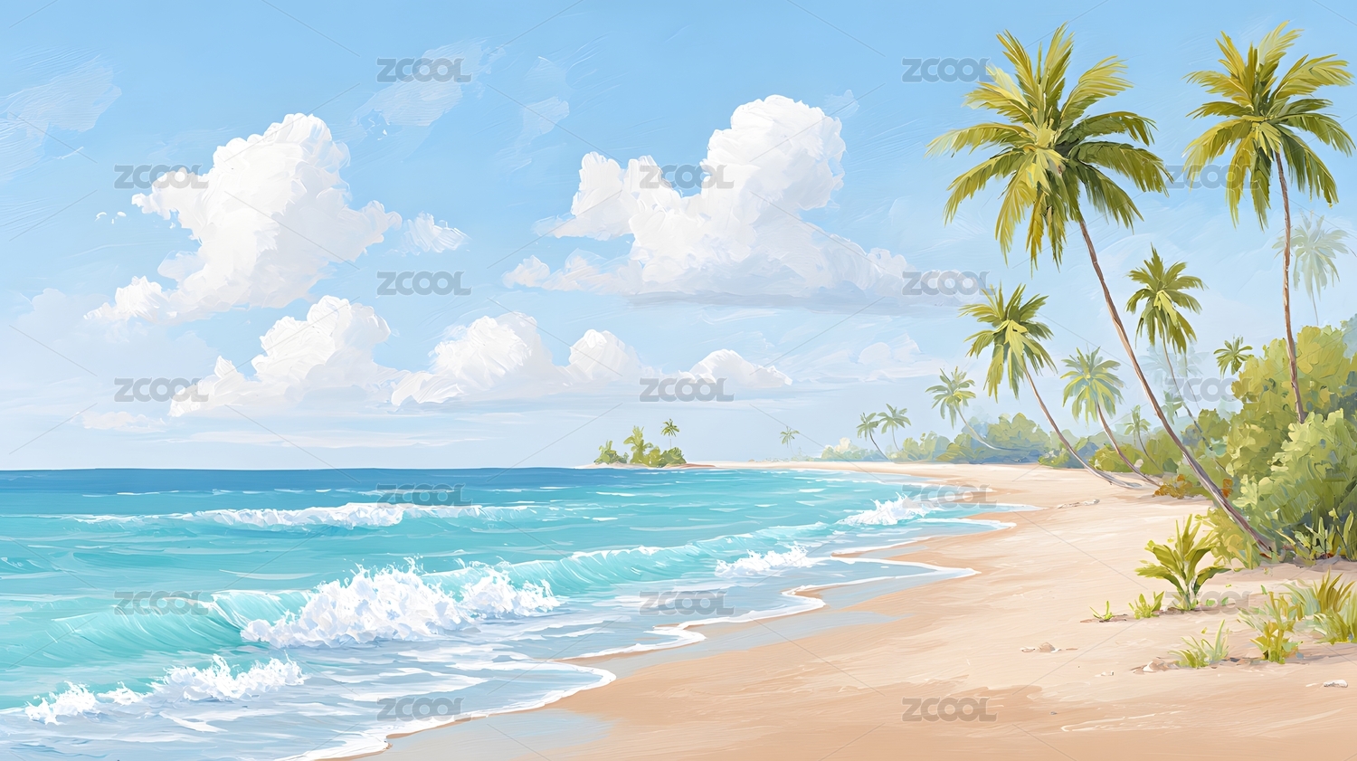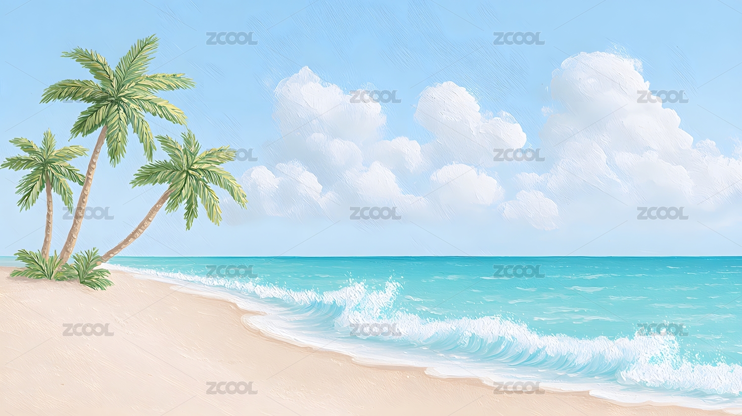 海边,大海,海洋,浪花,沙滩,蓝天,阳光,白云,棕榈树,海浪