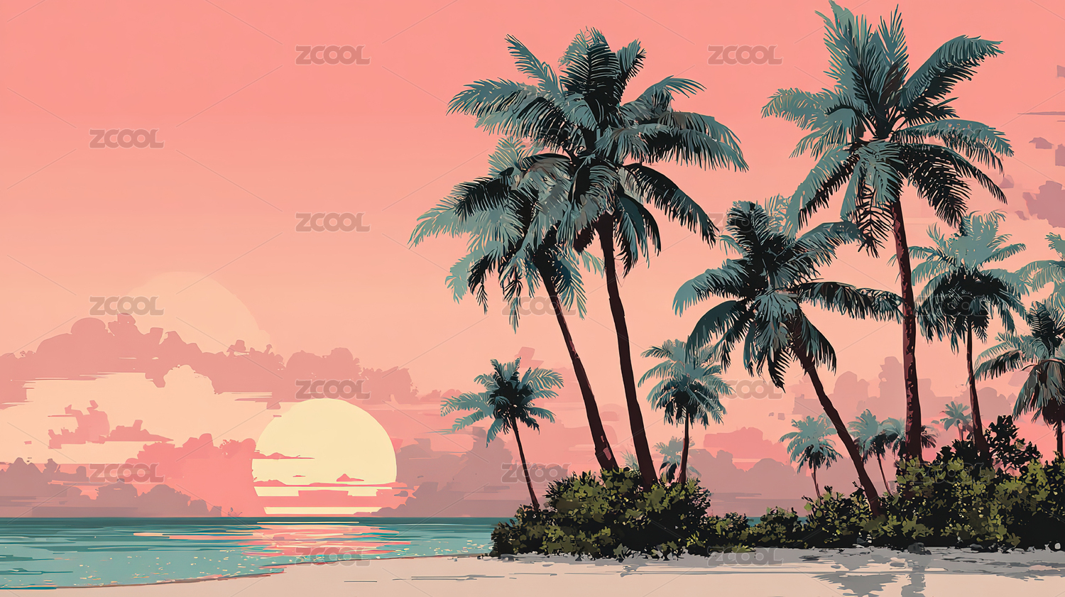 自然户外海边沙滩插画背景壁纸
