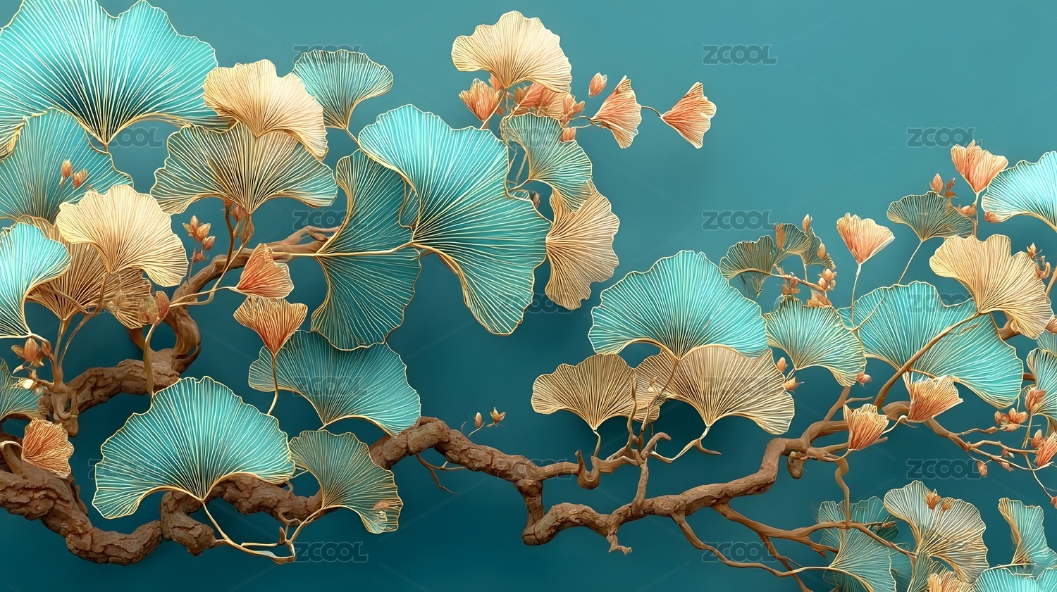 蓝色,金色,装饰,花纹,叶子,脉络,图案,背景,设计,艺术