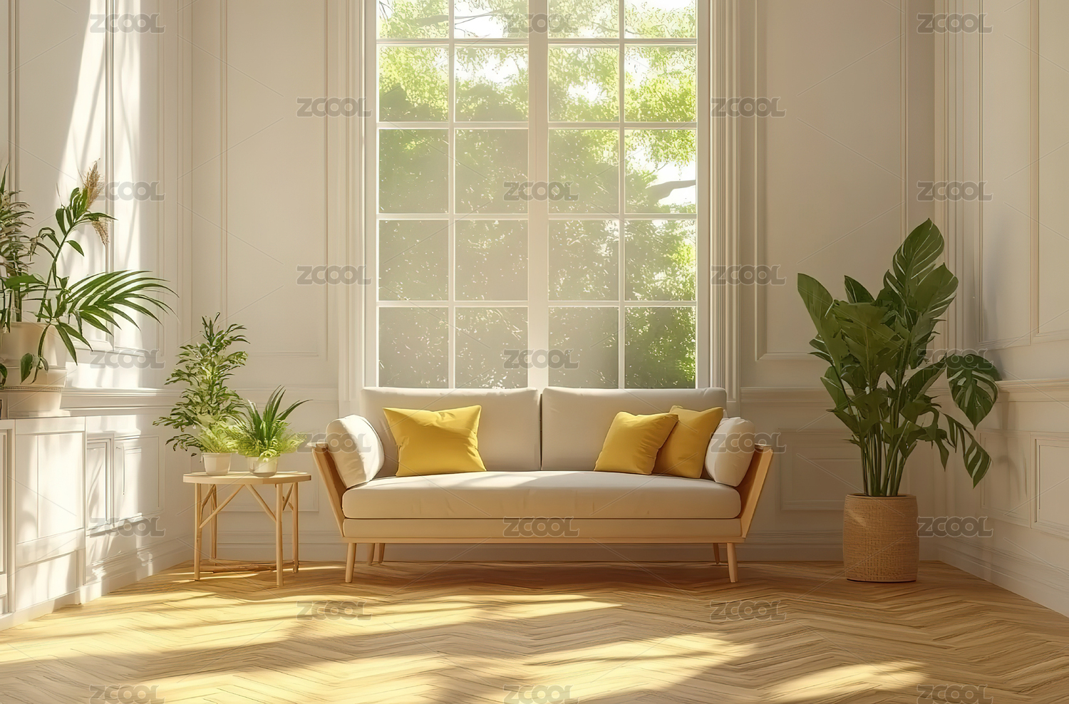室内,阳光,植物,窗户,房间,窗帘,白色,盆栽,沙发,客厅
