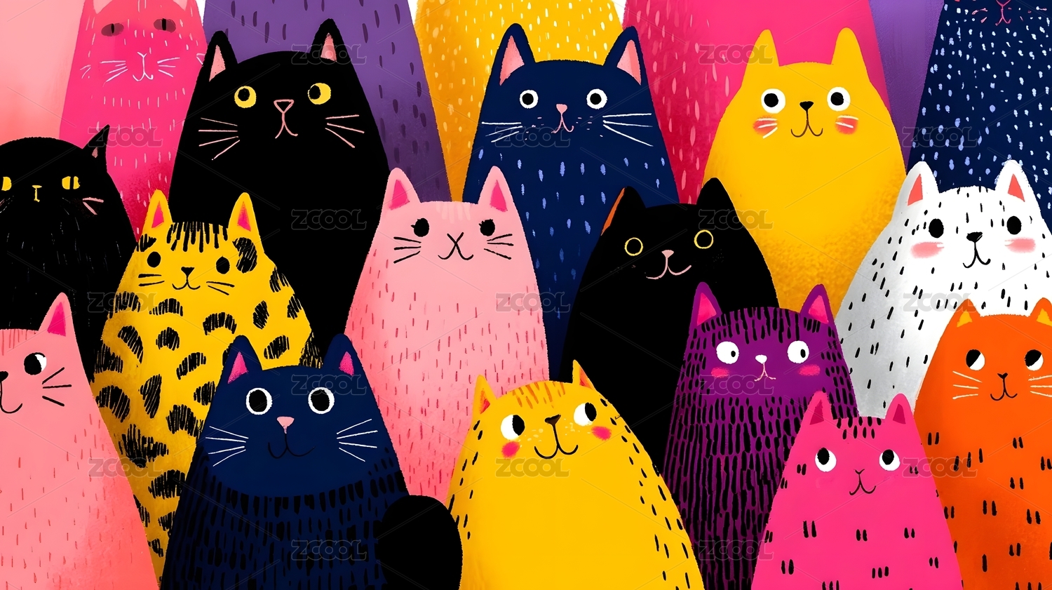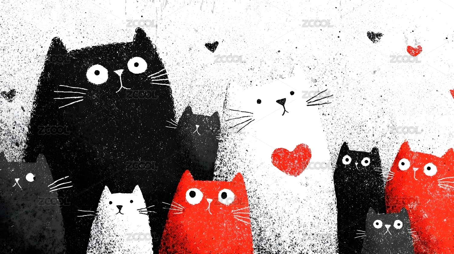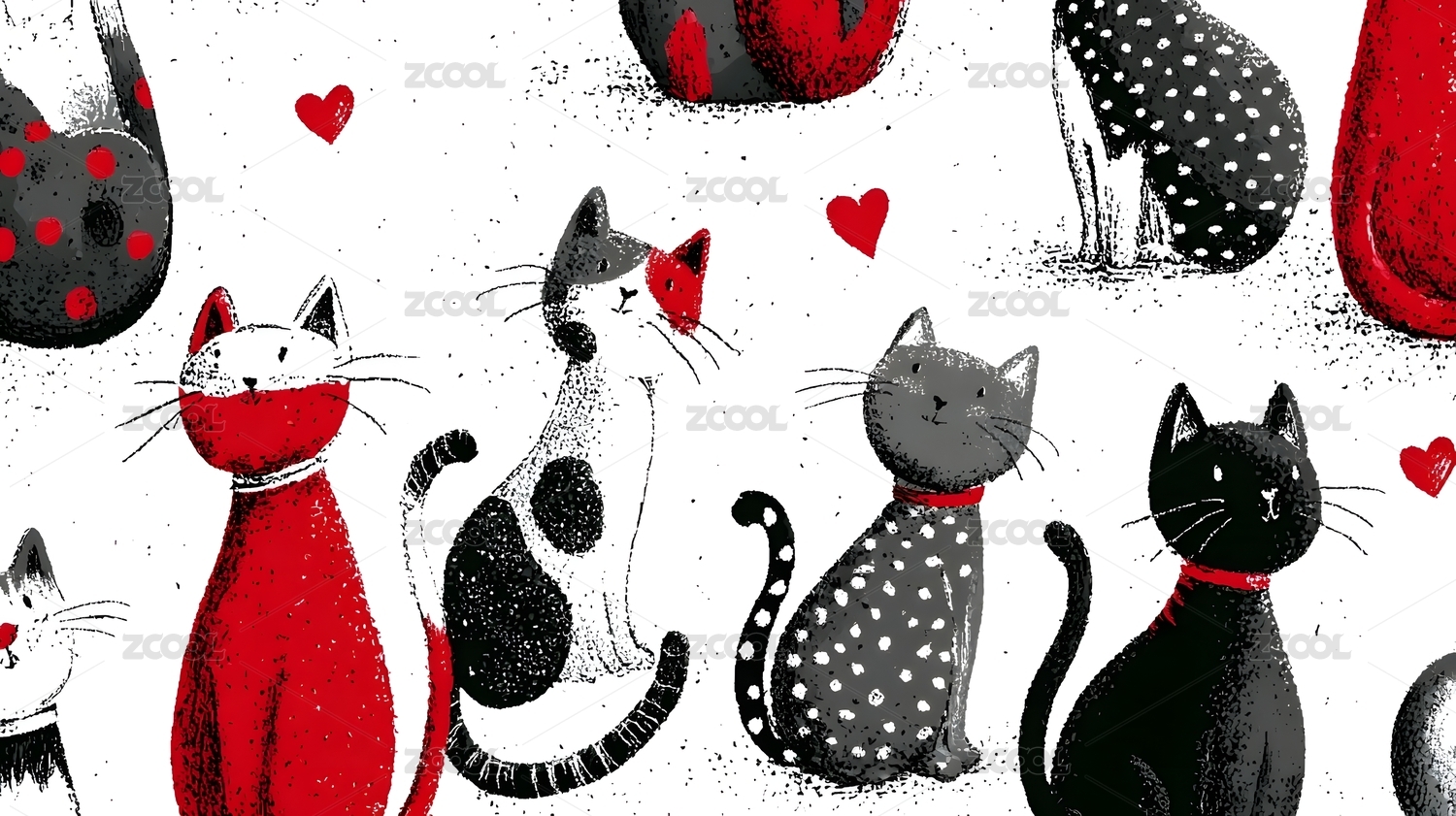 黄色,图案,背景,创意,设计,卡通,可爱,猫咪,红色,白色