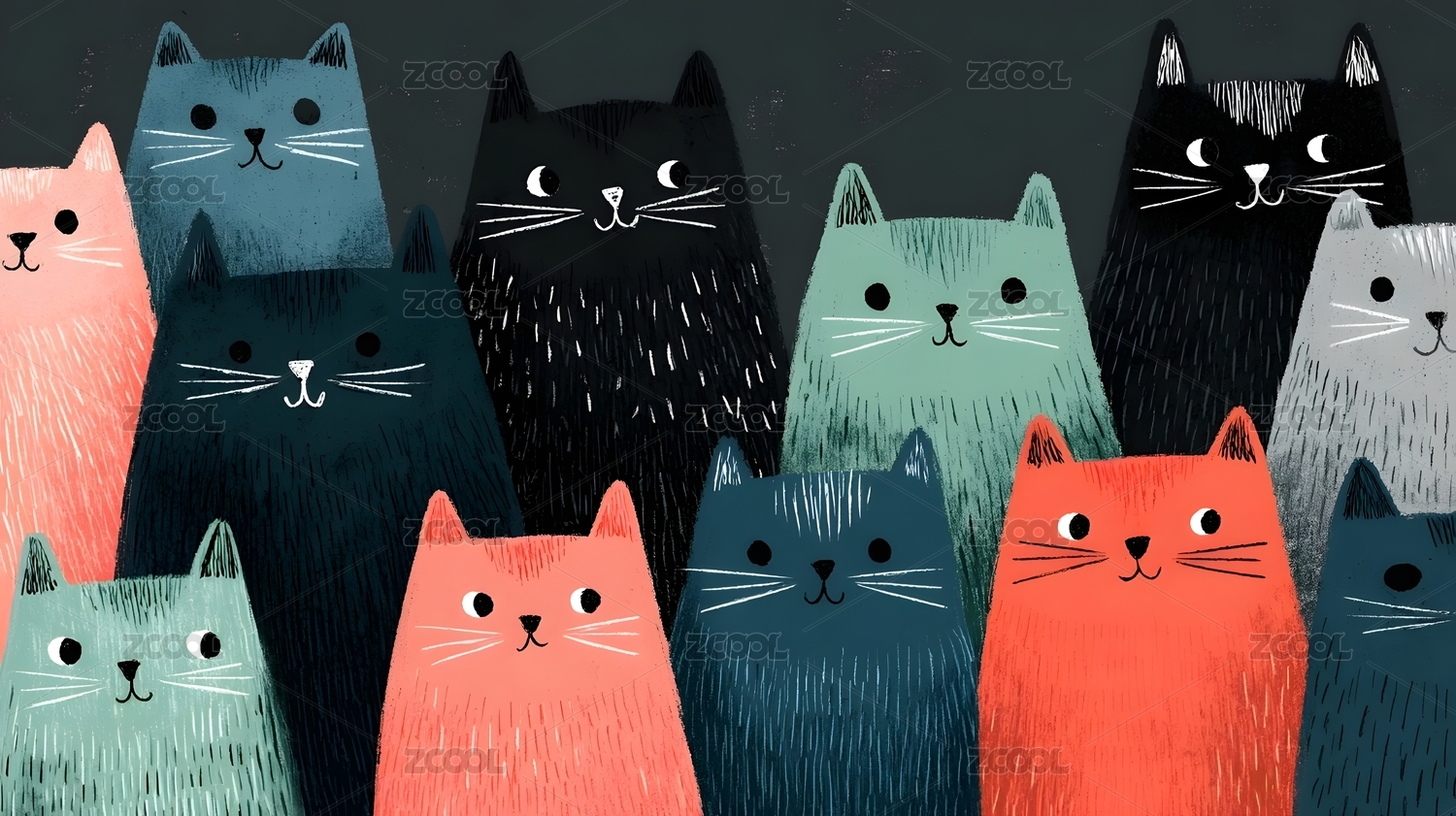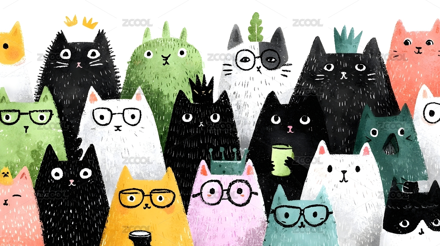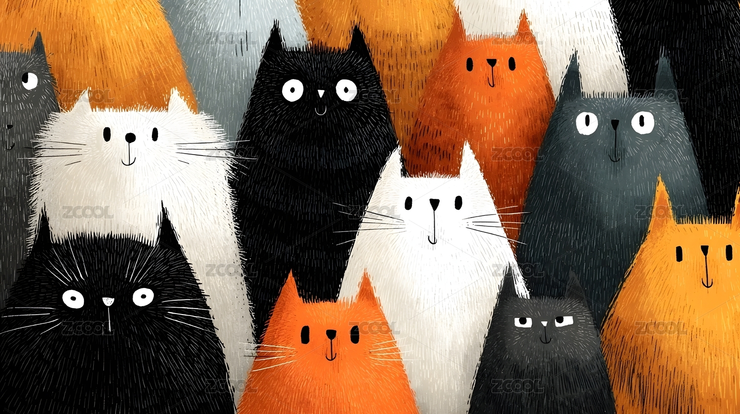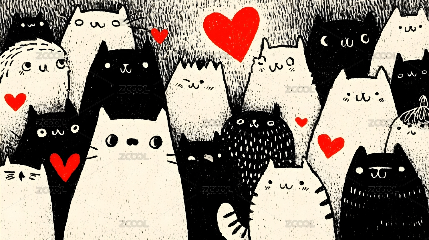 黄色,图案,背景,创意,设计,卡通,可爱,猫咪,红色,白色