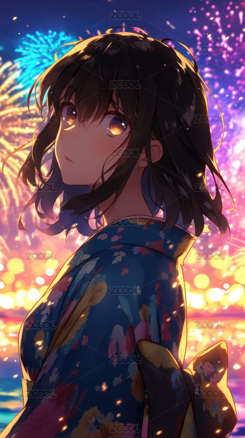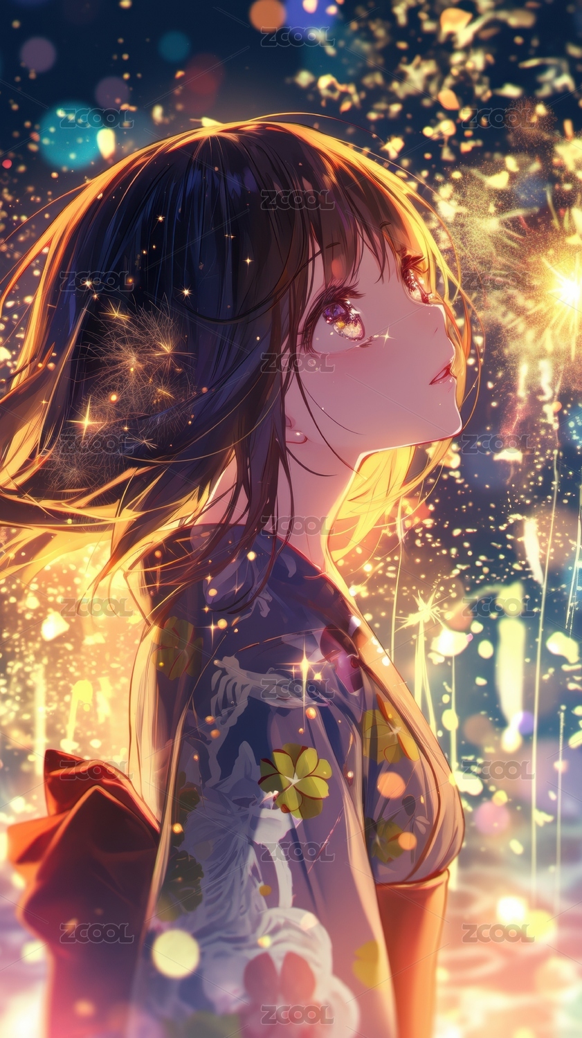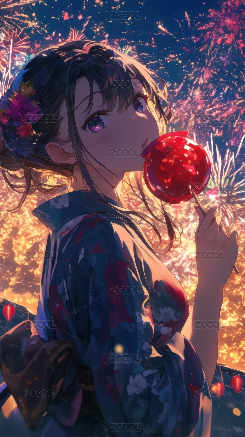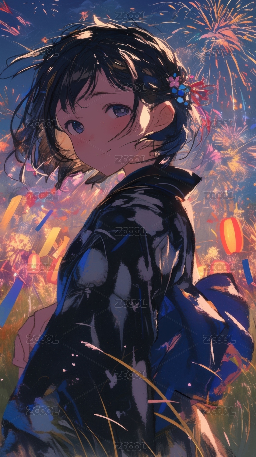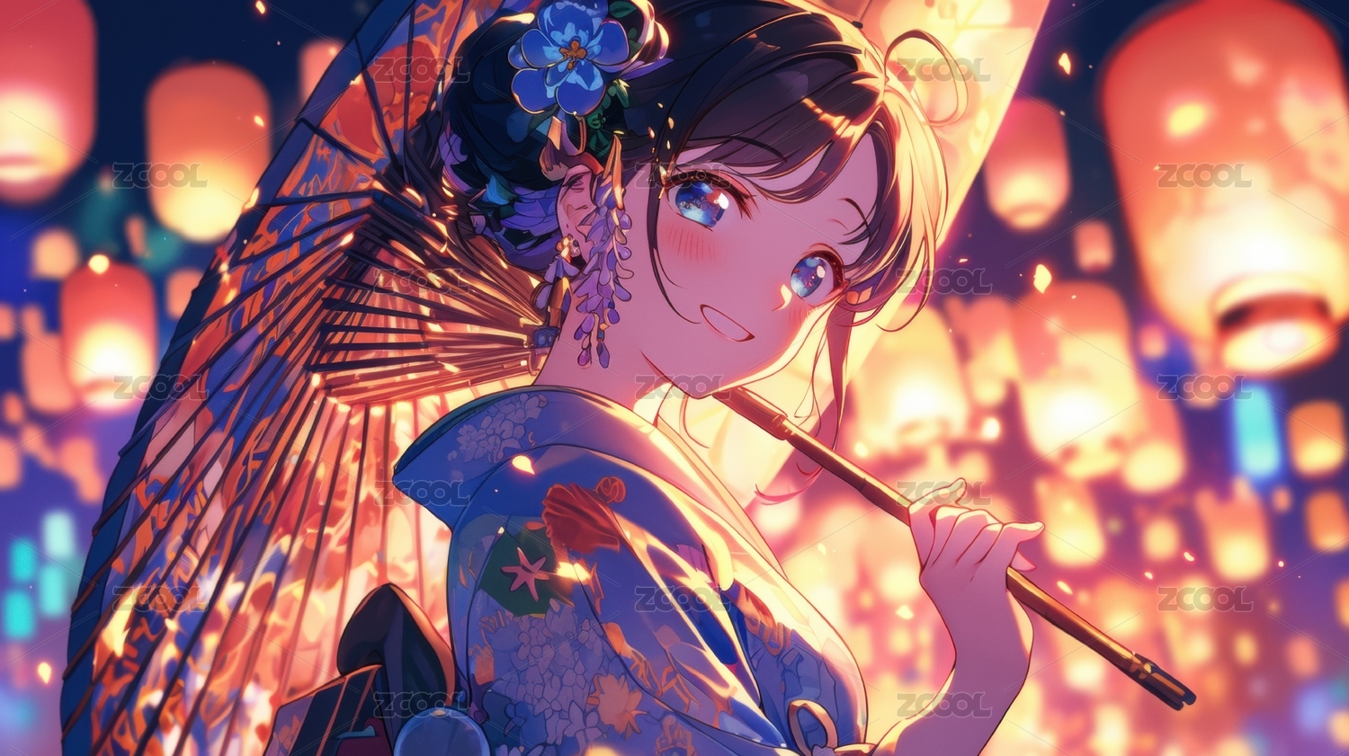插画,漫画,动漫,日漫,艺术,团扇,灯笼,节日,传统,服饰