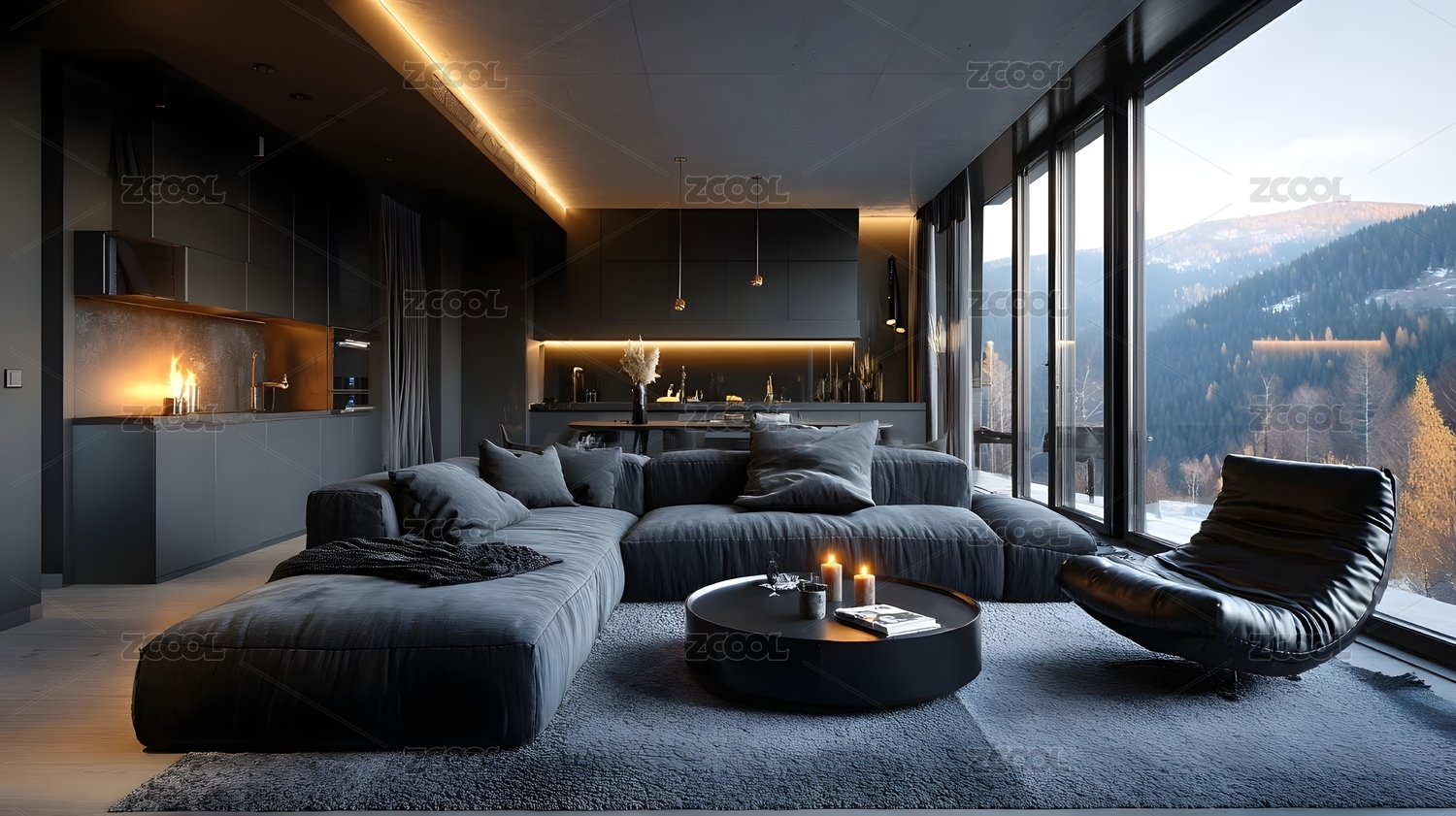 装饰,现代,植物,沙发,窗户,室内,地板,木质,家居,茶几