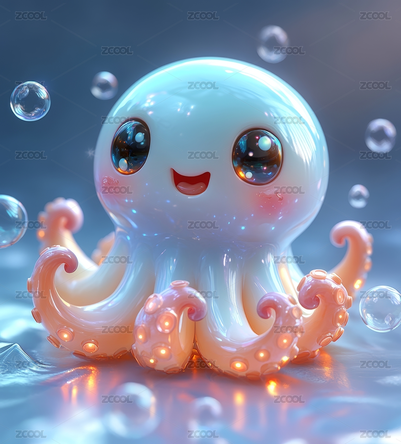可爱的半透明章鱼和浪花