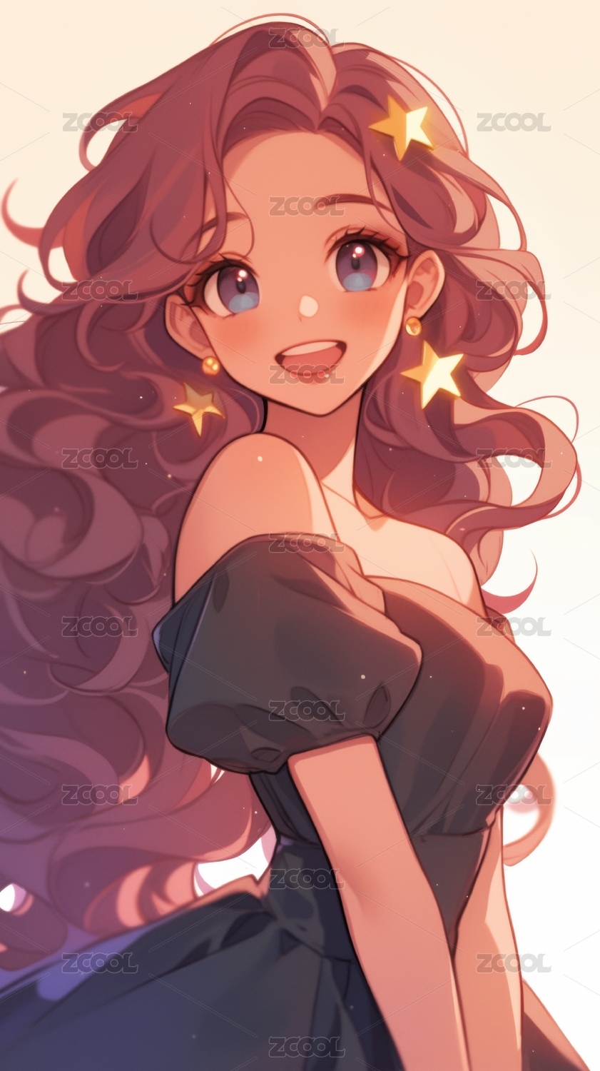 插画,卡通,漫画,金色,细节,光影,长发,优雅,美丽,柔和
