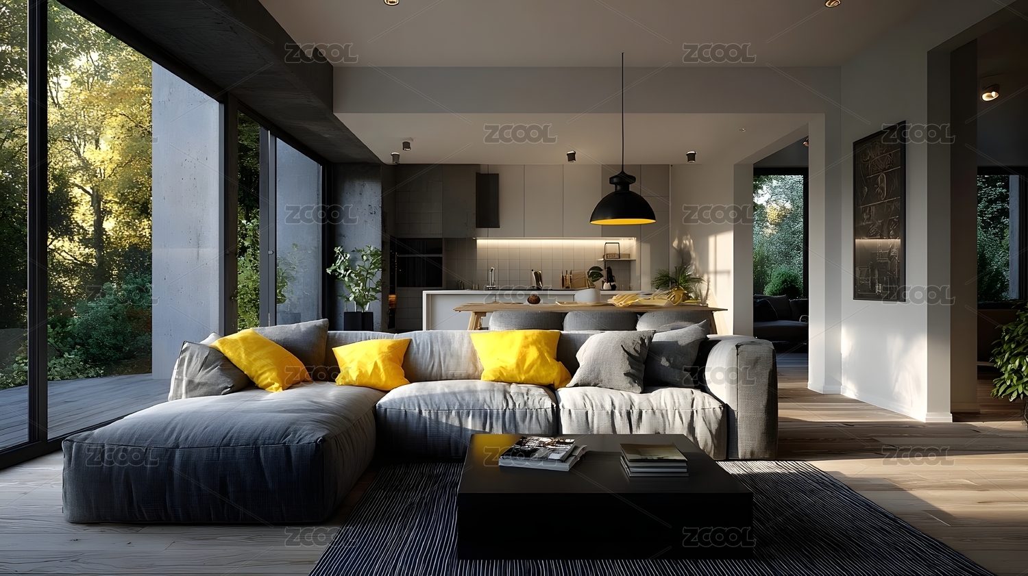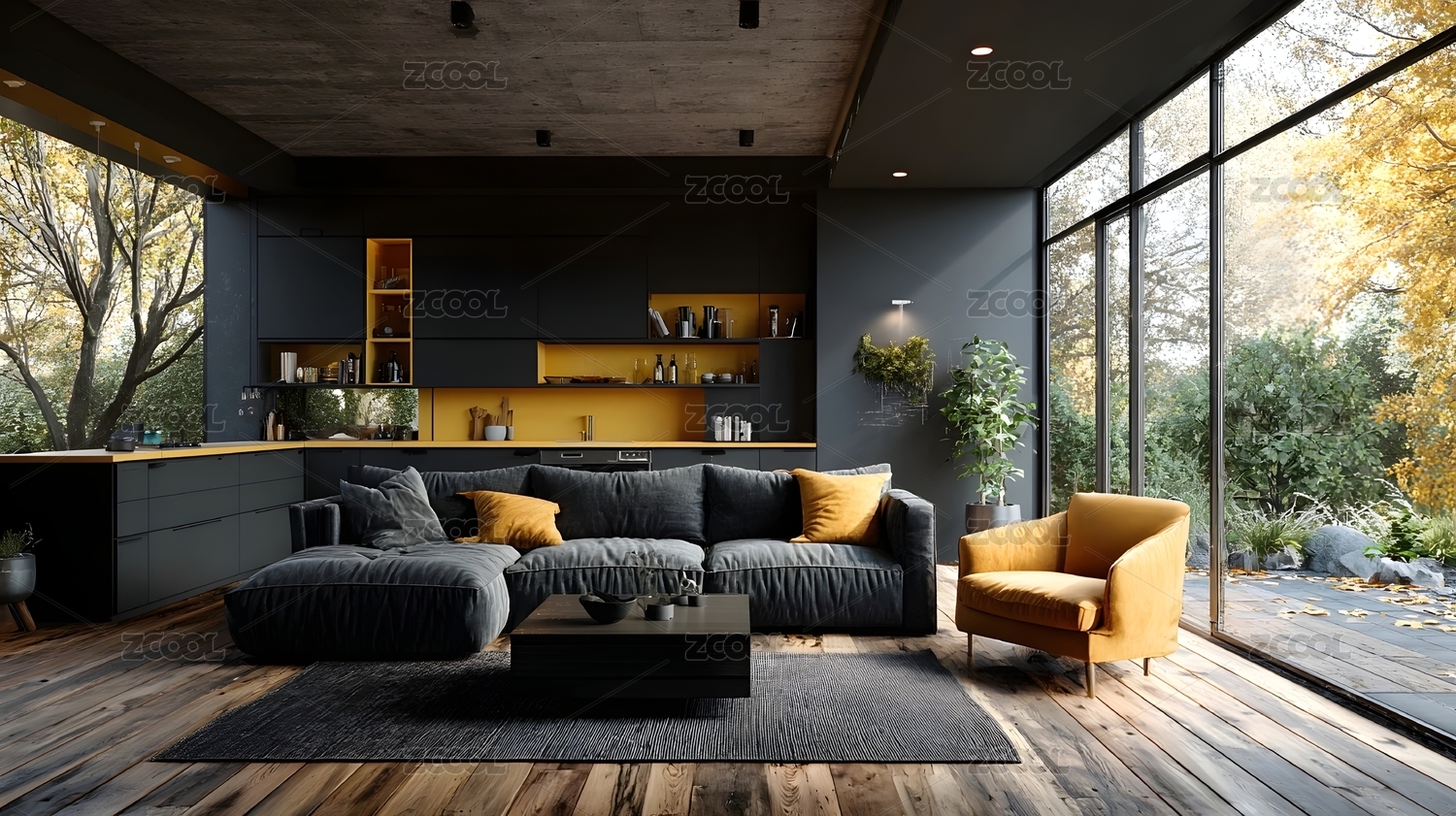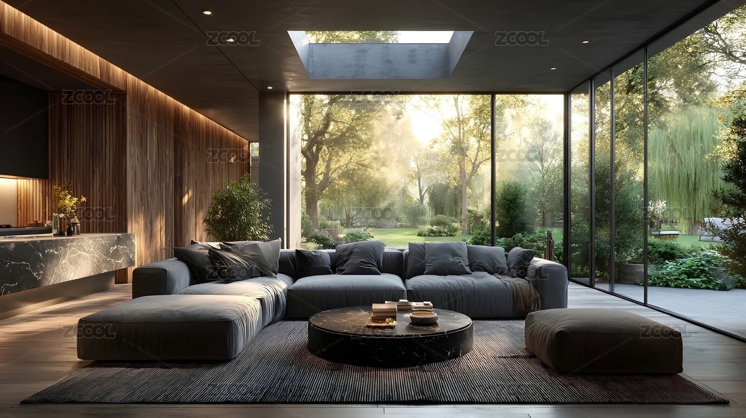 室内,装饰,窗户,地板,现代,玻璃,家具,灯光,灯带,沙发