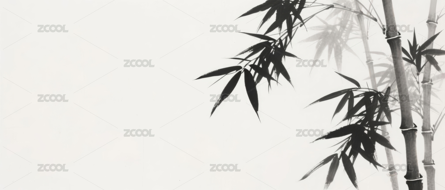 竹子水墨风中式绘画场景