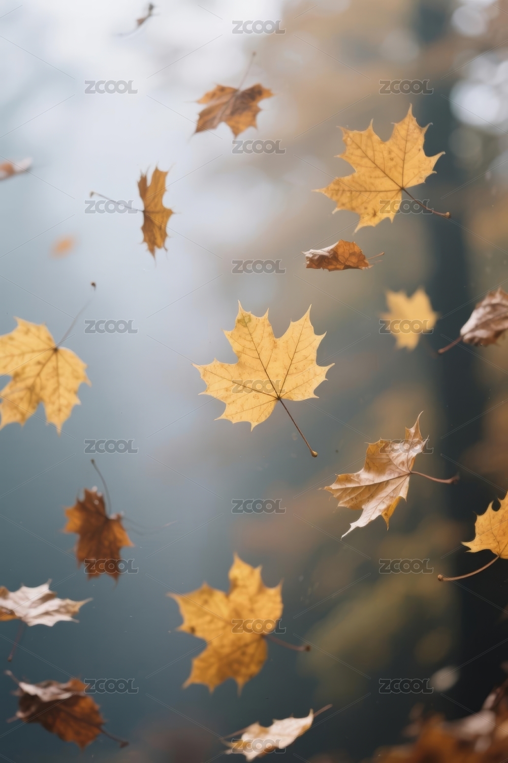 主视觉,场景,秋天,枫叶,金黄,飘落,秋季,落叶,叶片,色彩