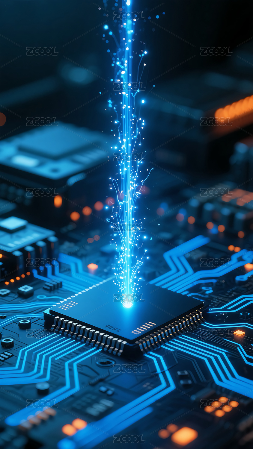 场景,科技,未来,数字,芯片,蓝光,电路,电子,元件,发光