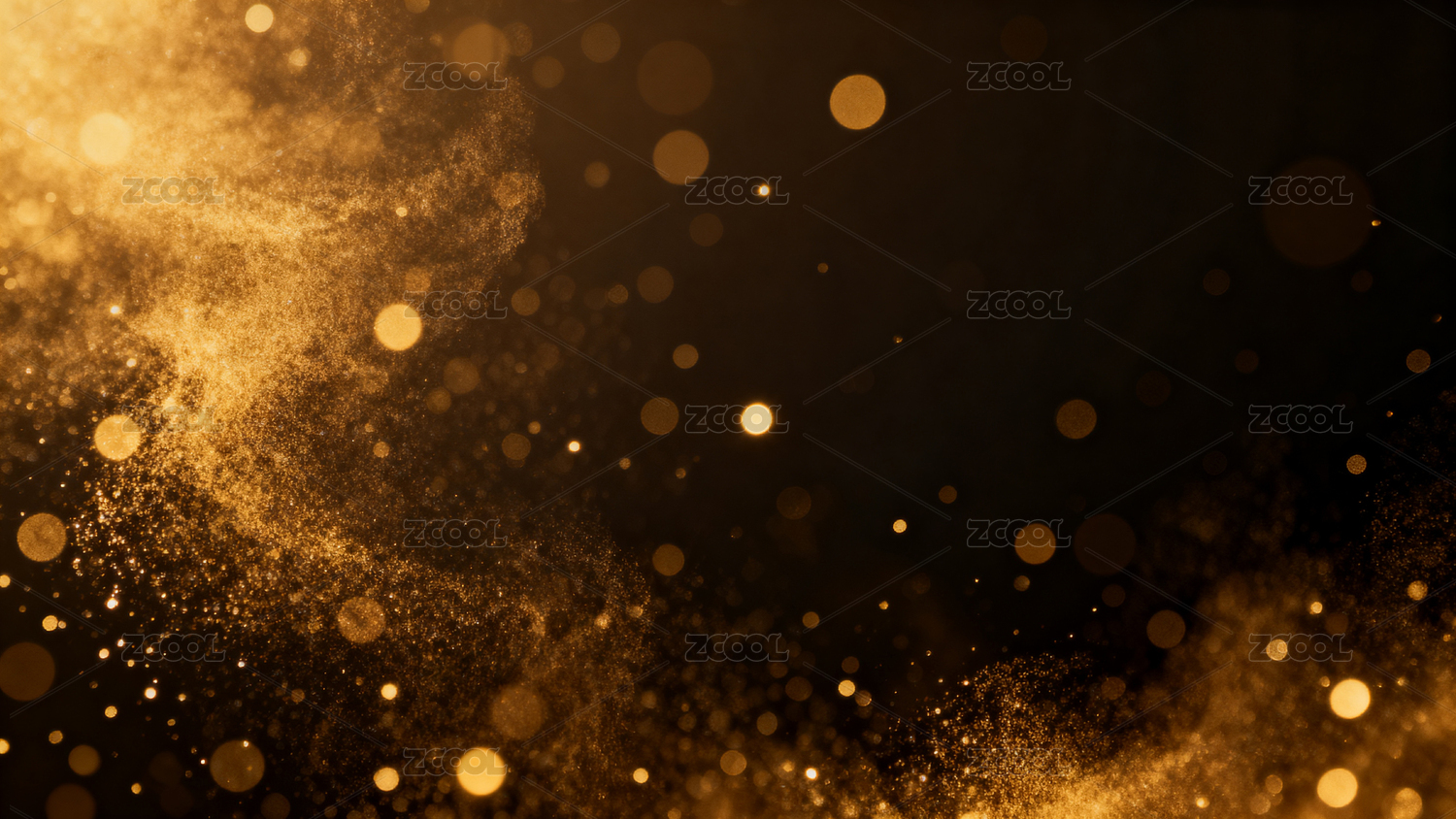 金色光斑洒落黑色背景营造梦幻氛围