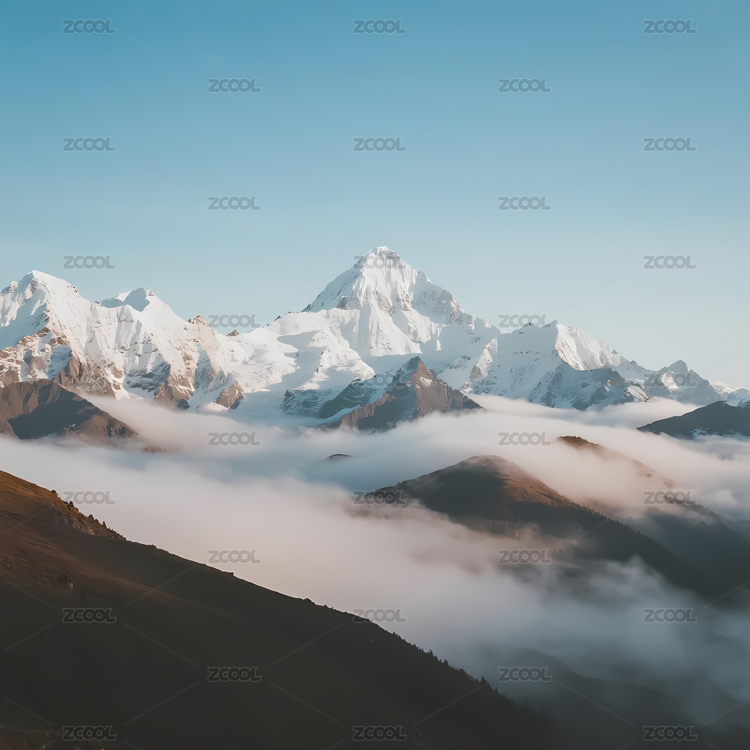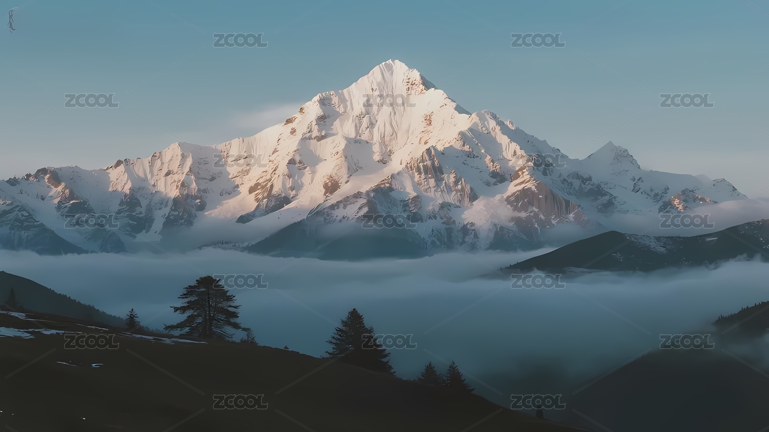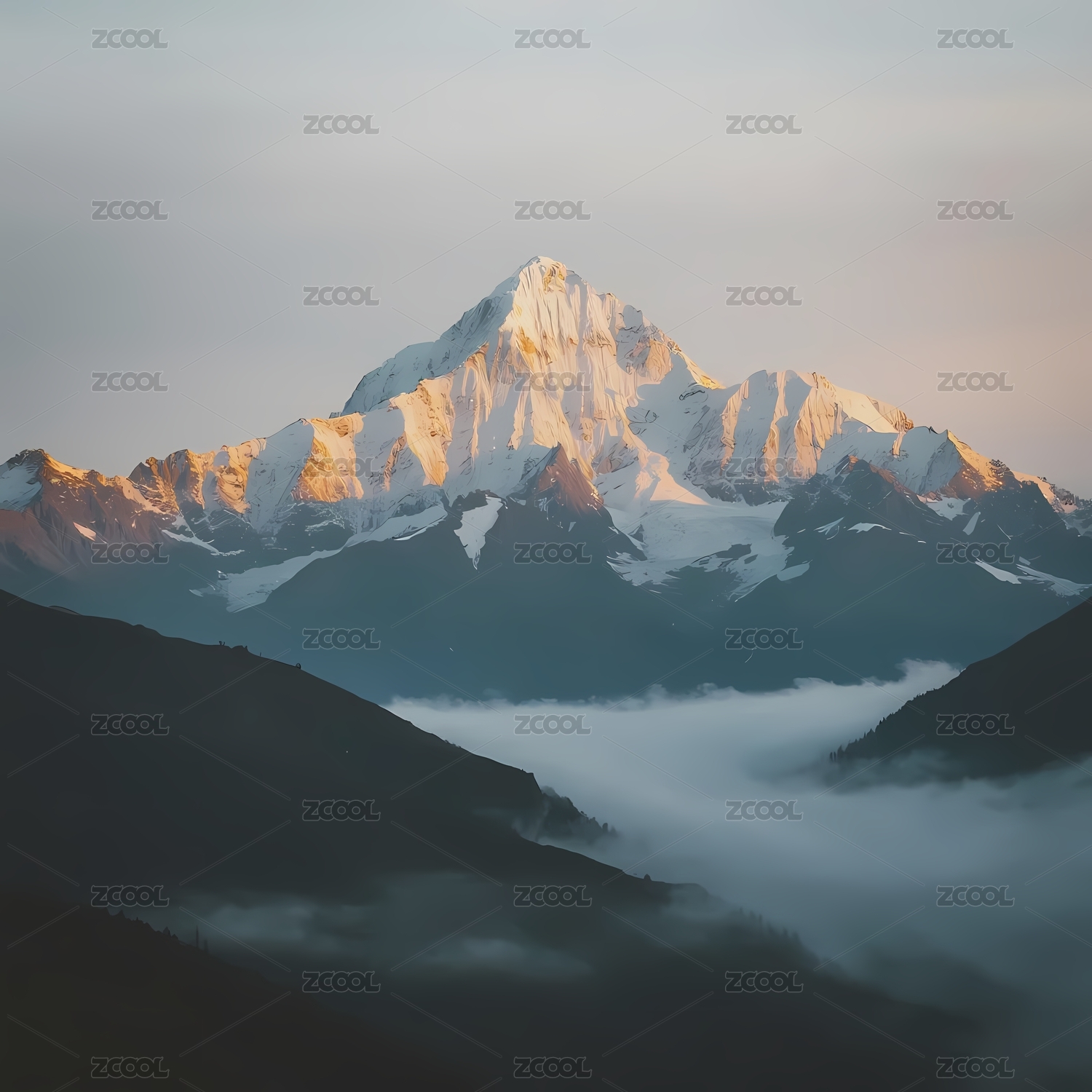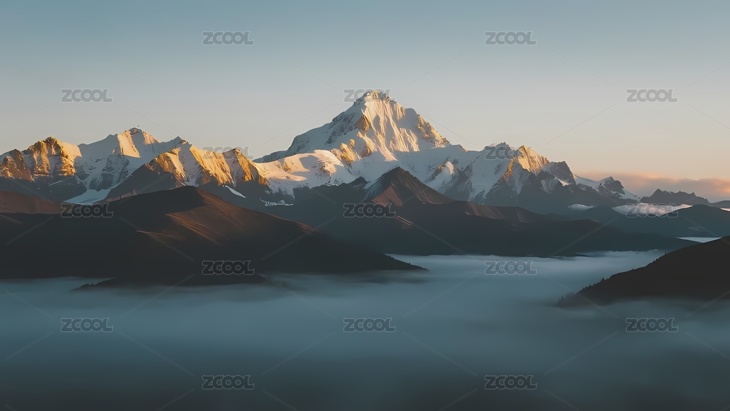雪山云海晨曦初照