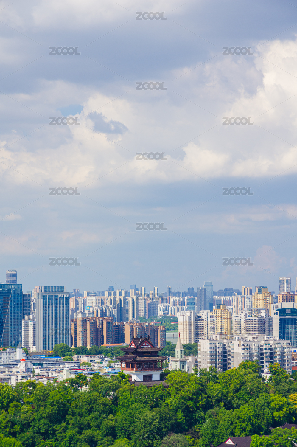 杭州南高峰远眺西湖雷峰塔与城隍阁城市建筑