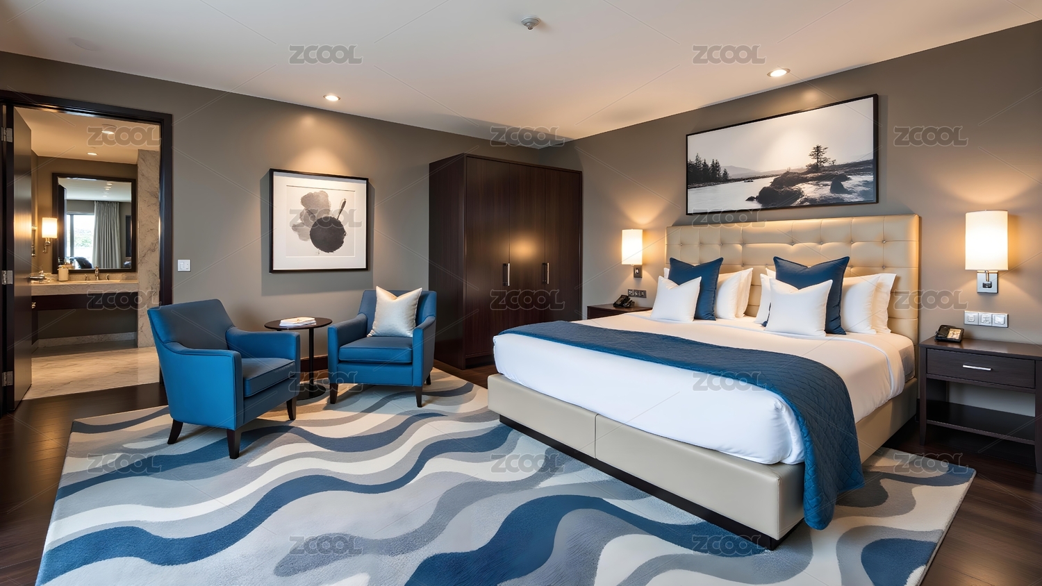 蓝色,旅行,酒店,灯光,静谧,住宿,室内设计,装饰,客房,卧室