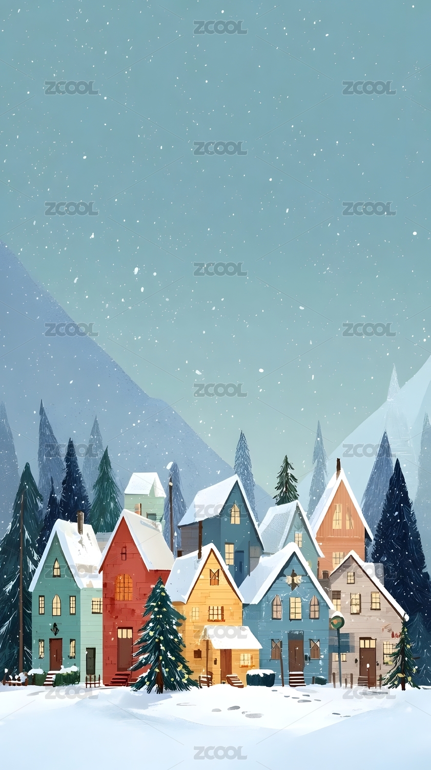 冬日雪景小镇