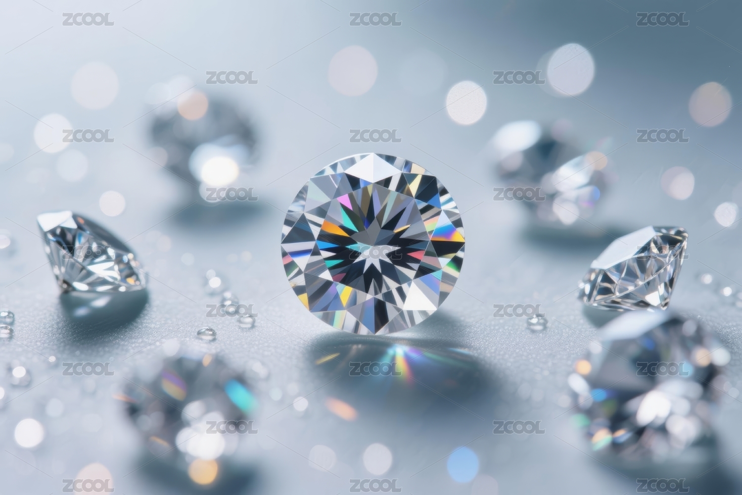 蓝色背景晶莹钻石