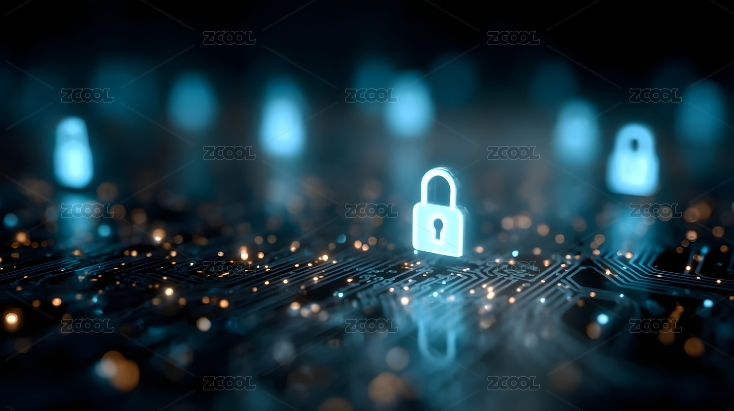 芯片,数字,锁,科技,信息,安全,保护,网络,蓝色,光影